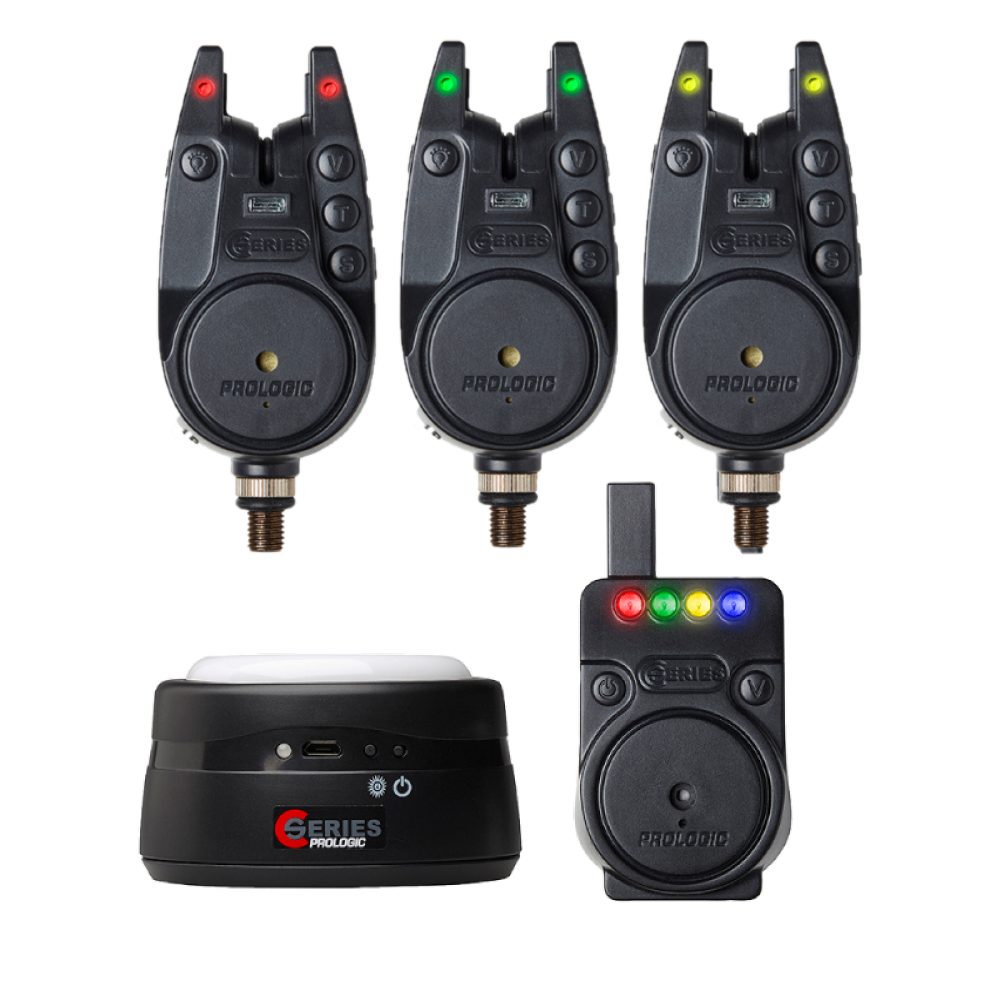 PROLOGIC C-Series Alarm 2+1+1 und 3+1+1. Ein komplettes Set mit allem, was Sie für eine erstklassige Bissanzeige benötigen. Beinhaltet die hochwertigen Bissanzeiger der C-Serie, einen Empfänger und ein kabelloses Bivvy-Light. Die Bissanzeiger haben sechs Lautstärke- und Empfindlichkeitsstufen sowie sechs verschiedene Töne für individuelle Anpassung. Wenn ein Biss erkannt wird, leuchten beide farbigen LEDs auf, eine LED-Farbe blinkt dann 20 Sekunden lang weiter. Verfügt über ein Nachtlicht, das durch einen speziellen Druckknopf aktiviert wird. Das drahtlose Bivvy-Light funktioniert in Verbindung mit den Bissanzeigern, leuchtet auf und schaltet sich für 5, 10 oder 20 Sekunden ein, wenn ein Biss erkannt wird. Das Licht kann über den Metallhaken oder vier eingebaute Magnete und eine Metallscheibe aufgehängt werden.