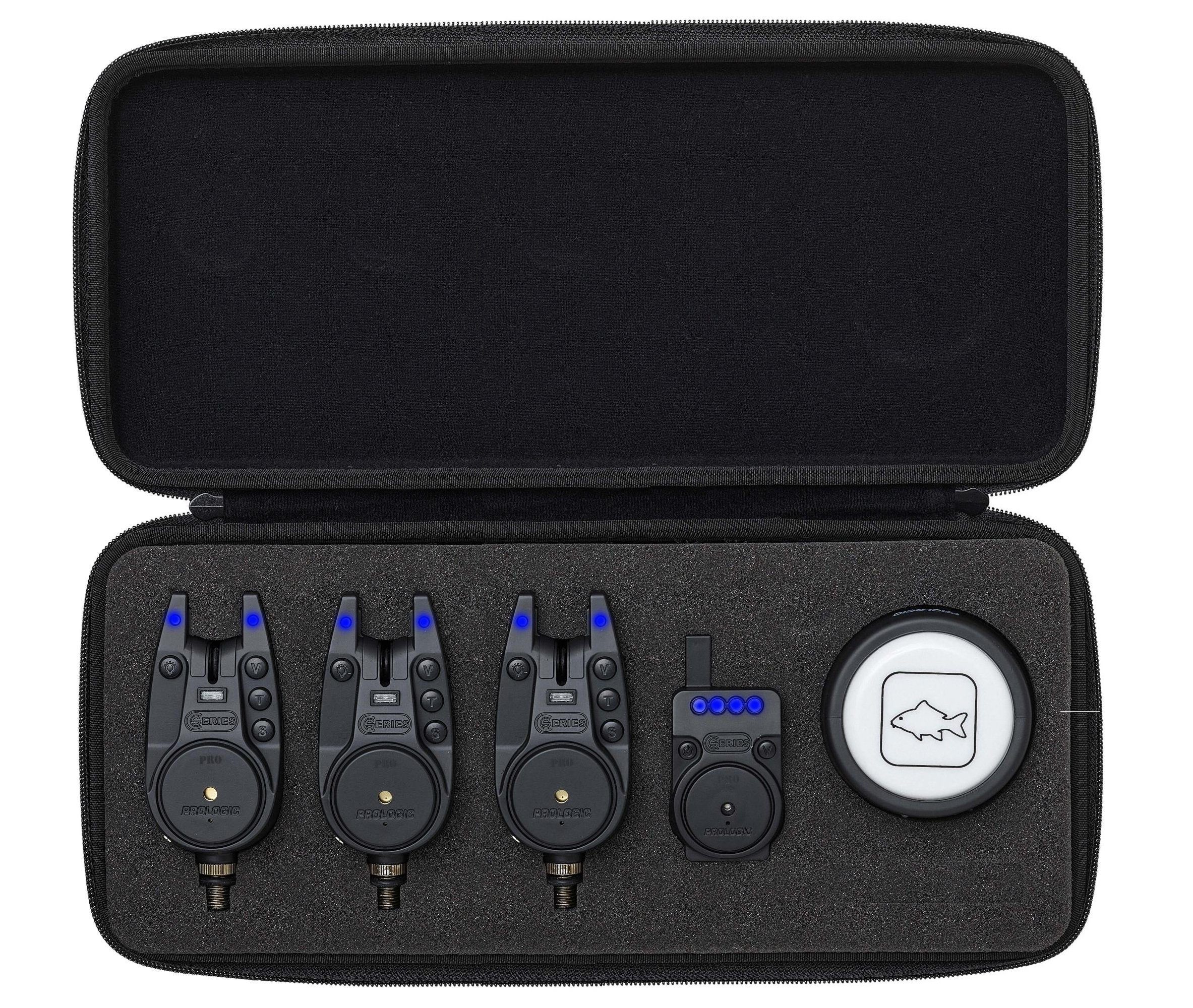 PROLOGIC C-Series Alarm PRO 3+1+1 ALL BLUE. Ein komplettes Set mit allem, was Sie für eine erstklassige Bissanzeige benötigen. Beinhaltet die hochwertigen Bissanzeiger der C-Serie, einen Empfänger und ein kabelloses Bivvy-Light. Die Bissanzeiger haben sechs Lautstärke- und Empfindlichkeitsstufen sowie sechs verschiedene Töne für individuelle Anpassung. Wenn ein Biss erkannt wird, leuchten beide farbigen LEDs auf, eine LED-Farbe blinkt dann 20 Sekunden lang weiter. Verfügt über ein Nachtlicht, das durch einen speziellen Druckknopf aktiviert wird. Das drahtlose Bivvy-Light funktioniert in Verbindung mit den Bissanzeigern, leuchtet auf und schaltet sich für 5, 10 oder 20 Sekunden ein, wenn ein Biss erkannt wird. Das Licht kann über den Metallhaken oder vier eingebaute Magnete und eine Metallscheibe aufgehängt werden. Bissanzeiger benötigt eine 9V-Batterie (nicht enthalten) Empfänger benötigt drei 1,5-V-AAA-Batterien (nicht im Lieferumfang enthalten)