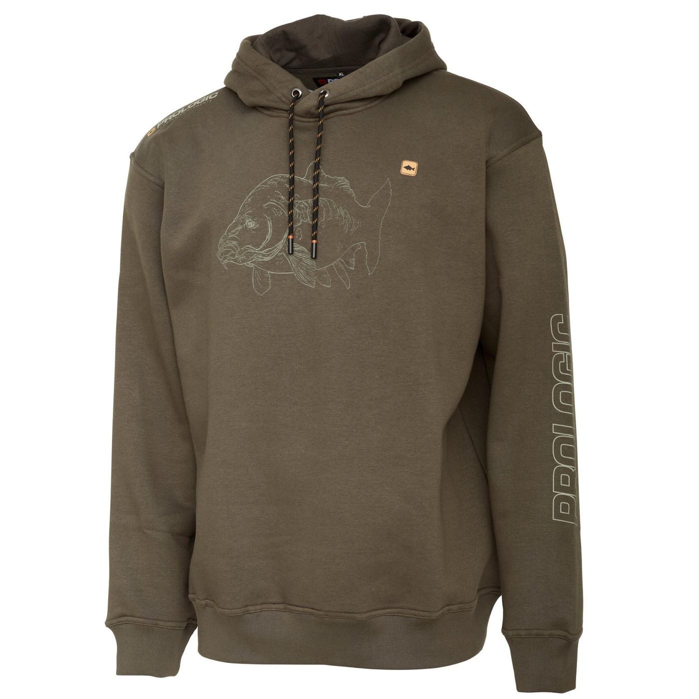 Prologic Mirror Carp Hoodie Ivy Green - Halten Sie sich beim Angeln schön warm, genießen den Komfort und demonstrieren Sie Ihre Leidenschaft fürs Karpfenangeln mit diesem stilvollen und praktischen Kapuzenpullover von Prologic. Hergestellt aus einer weichen Polyester-Baumwoll-Kombination, mit dem dezenten Bild eines Spiegelkarpfens auf der Vorderseite und dem Prologic-Logo am Arm und auf der Brust. Die efeugrüne Farbe ist perfekt für die Tarnung am Ufer, aber sieht aber auch beim Chillen zu Hause oder beim Stadtbummel toll aus.