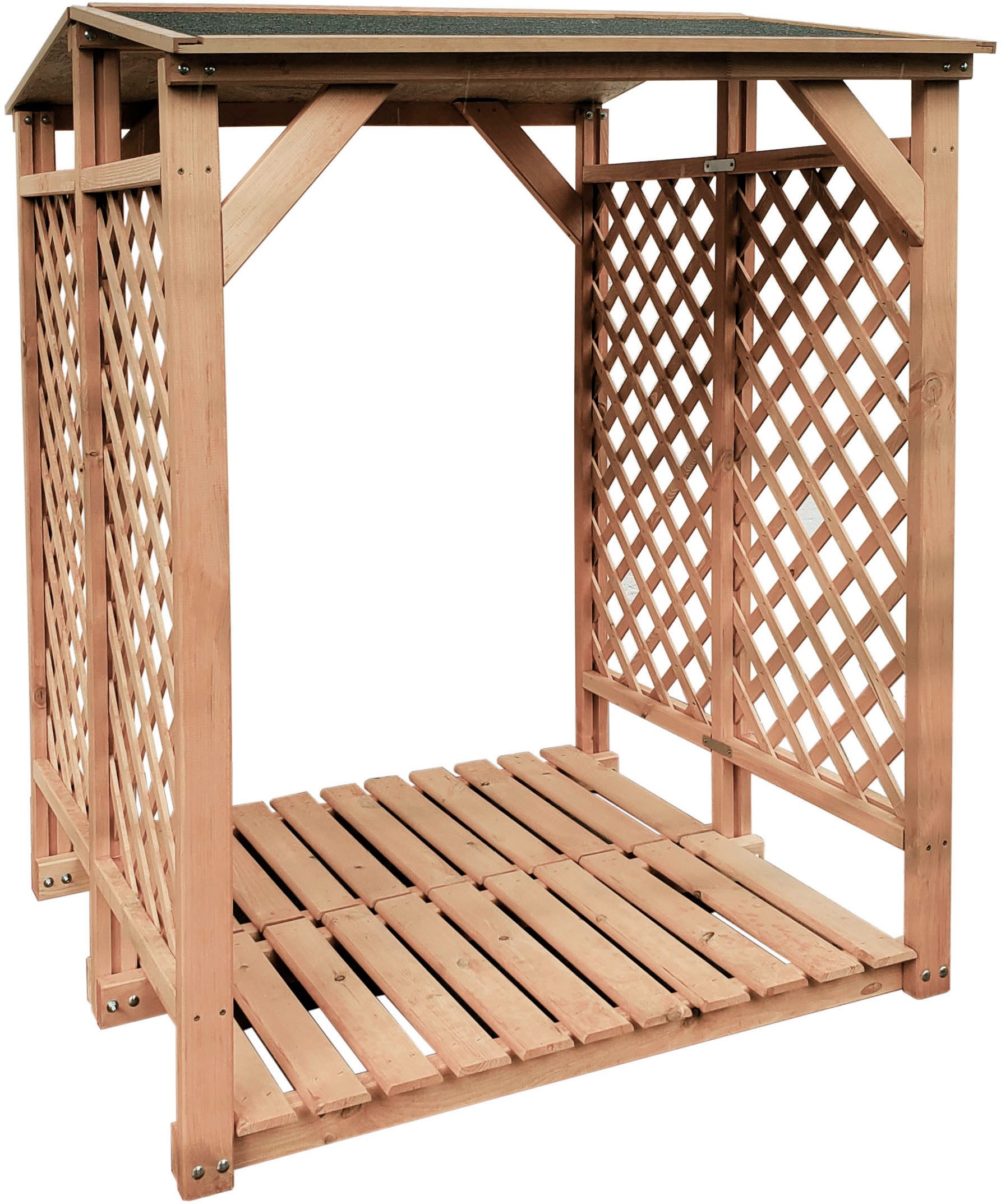 Promadino Kaminholzlager: Ihre stilvolle Lösung zur Kaminholzlagerung im Garten Stellen Sie sich vor, wie Sie an einem kalten Winterabend vor dem prasselnden Kamin sitzen, während das Feuer eine angenehme Wärme verströmt. Das perfekt gestapelte Holz liegt nur einen Handgriff entfernt im stilvollen Kaminholzregal Speyer von Promadino. Sie stehen auf, greifen sich einen Holzscheit, schieben diesen in Ihren Kamin und genießen den Abend. Mit dem Kaminholzregal Speyer bleibt diese entspannte Vorstellung kein Traum – mit dem eleganten Kaminholzunterstand schaffen Sie nicht nur Ordnung in Ihrem Garten, sondern verschönern gleichzeitig Ihren Außenbereich. Das Kaminholzregal Speyer überzeugt durch seine natürliche Holzoptik, die Ihrem Garten oder Ihrer Terrasse eine warme und gemütliche Atmosphäre verleiht. Gefertigt aus massivem Lärchenholz garantiert es eine stabile Konstruktion, die den täglichen Anforderungen, bei richtiger Pflege, über Jahre hinweg standhält. Bei Promadino steht Qualität an erster Stelle. Hergestellt in Europa, verbindet das Regal hervorragende Verarbeitung mit kurzen Lieferwegen. Dabei kommt nur Holz aus zertifizierter Forstwirtschaft zum Einsatz, sodass Sie mit Ihrem Kauf einen Beitrag leisten. Dank seiner robusten Bauweise und des hochwertigen Materials ist das Regal ideal, um Ihr Kaminholz draußen zu lagern und dabei optimal vor Feuchtigkeit und Schmutz zu schützen. Entscheiden Sie sich für das Promadino Kaminholzregal Speyer und genießen Sie die perfekte Kombination aus Design und Funktionalität. Schaffen Sie Ordnung bei der Kaminholzlagerung und lassen Sie sich von der langlebigen Qualität dieses Regals begeistern!