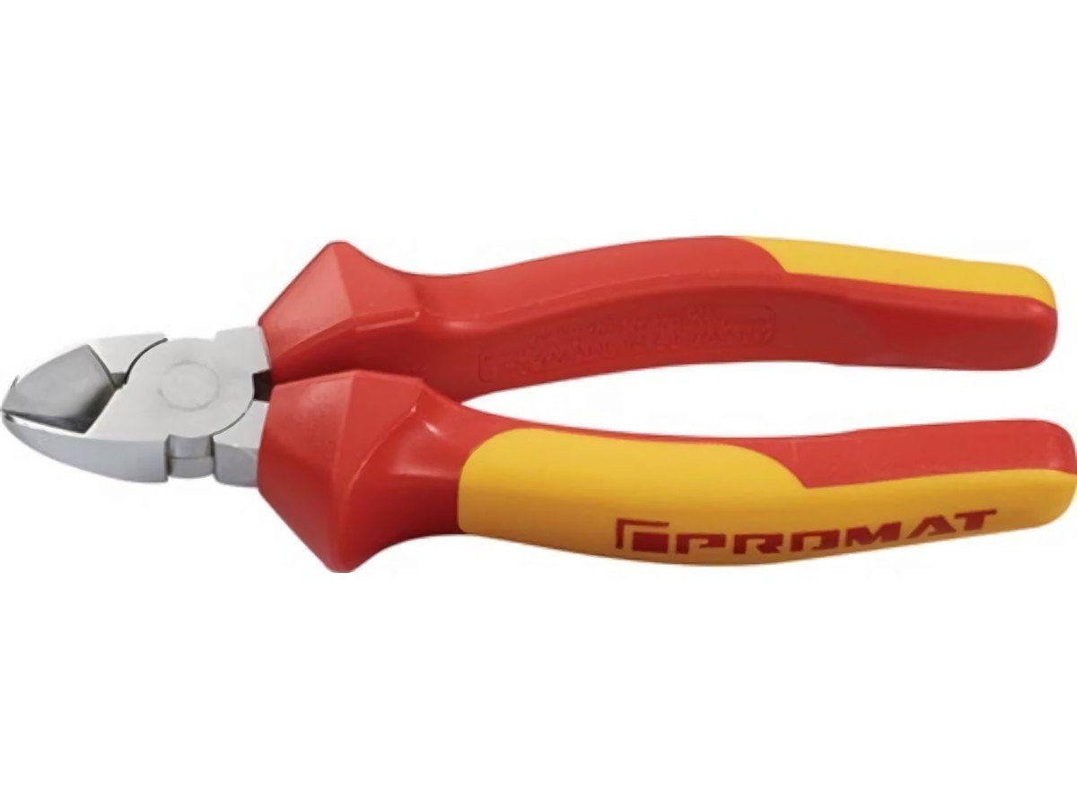 Seitenschneider L.130mm VDE Mehrkomp.-Hüllen PROMAT VDE-isoliert bis 1000 V · gefertigt gem. DIN EN/IEC 60900, stückgeprüft · für weichen und harten Draht · Schneiden zusätzlich gehärtet, Schneidenhärte ca. 62 HRC · Spezial-Werkzeugstahl, ölgehärtet und angelassenZange verchromtВпередe technische Eigenschaften:· Material: Spezial-Werkzeugstahl