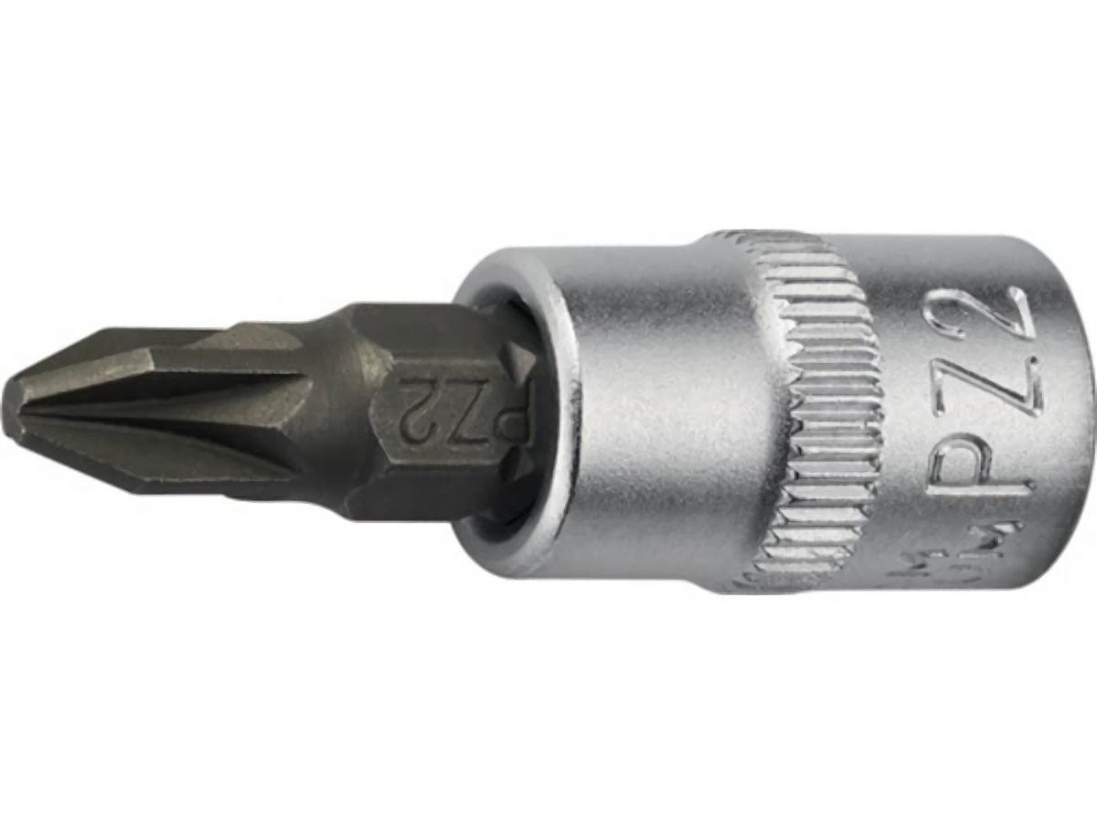 Steckschlüsseleinsatz 1/4 Zoll PZD PZD 2 L.32mm PROMAT 6,3 mm (1/4 ?)-Vierkantantrieb · für Schrauben mit Kreuzschlitz (PZD) · Sockel aus CV-Stahl · matt verchromt · Klinge aus Sonderstahl · phosphatiert · DIN 3120 / ISO 1174