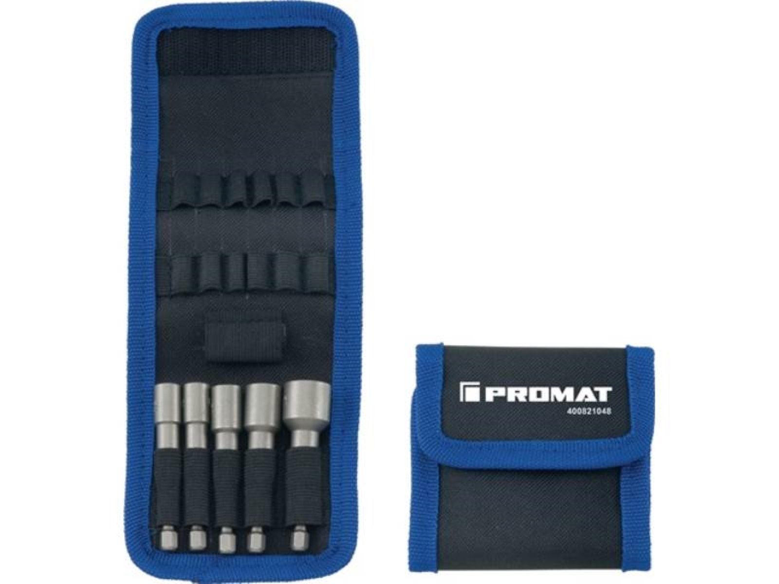 Steckschlüsselsortiment 5-tlg.SW 6/7/8/10/13mm Antr.1/4 Zoll 6KT E6,3 PROMAT für Hand- und Maschinenbetrieb (konv. Akkuschrauber) · mit starkem Dauermagnet Antrieb: 6,3 mm (1/4?)-Sechskant DIN 3126 - E 6,3 · ISO 1173 Inhalt: je 1 Steckschlüssel-Einsatz mit 6,3 mm (1/4?)-6-kant-Antrieb 6 / 7 / 8 / 10 / 13 mm Впередe technische Eigenschaften: · Длина: 50mm · Schlüsselweiten: 6/7/8/10/13mm Lieferung in stabiler Klapptasche