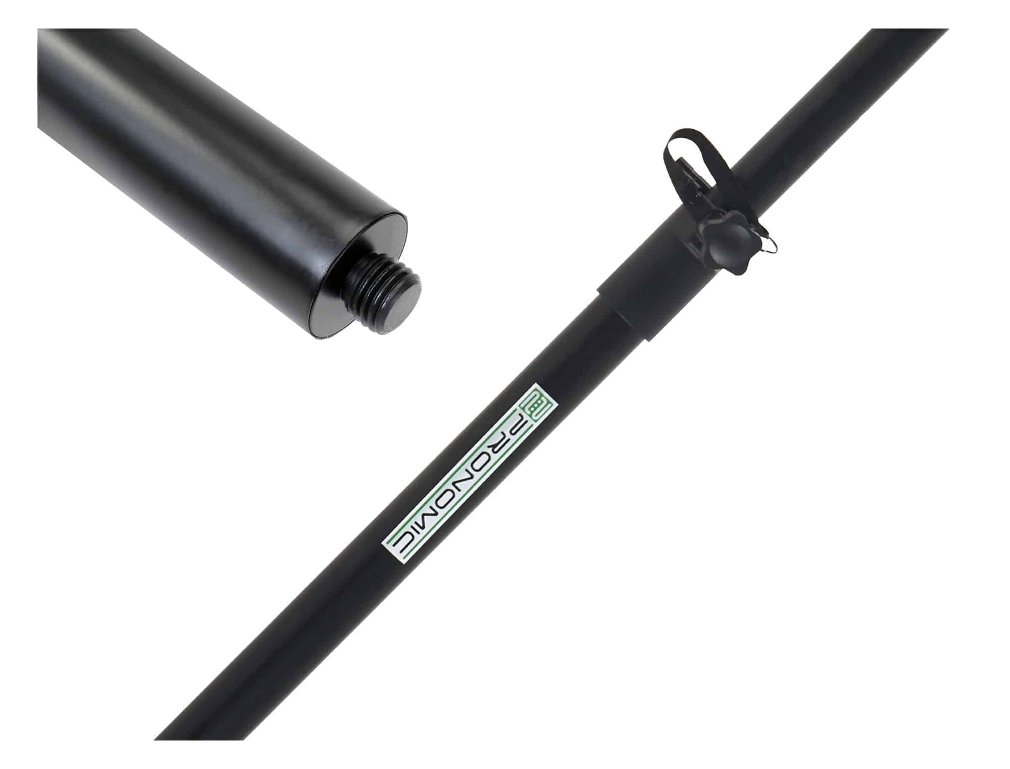 Mit den Pronomic Distanzstangen können Topteile direkt auf Subwoofer montiert werden - und das in der richtigen Höhe. Die meisten Subwoofer verfügen bereits über eine entsprechende Aufnahme. Die Distanzstangen lassen sich je nach Ausführung mit oder ohne M20-Gewinde ganz einfach aufstecken oder -schrauben. Die Höhenverstellung erfolgt mittels eines Rasterbolzens, der zusätzlich mit einer Fixierschraube gesichert ist.