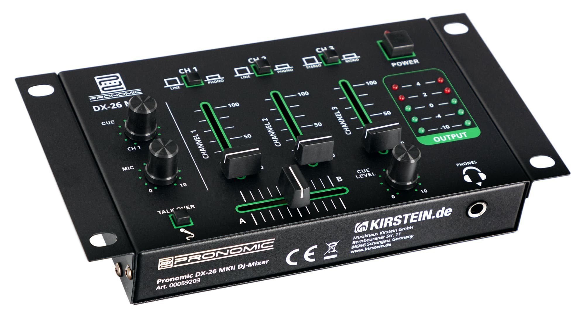 Der Pronomic DX-26 MKII ist ein professioneller DJ-Mixer für eine Vielzahl von Anwendungen, wie zum Beispiel in Discotheken, für Party-Beschallung, in der Gastronomie oder auch bei Präsentationen. Die einfache Bedienung erlaubt dabei auch technisch weniger versierten Anwendern, den Funktionsumfang voll zu nutzen.