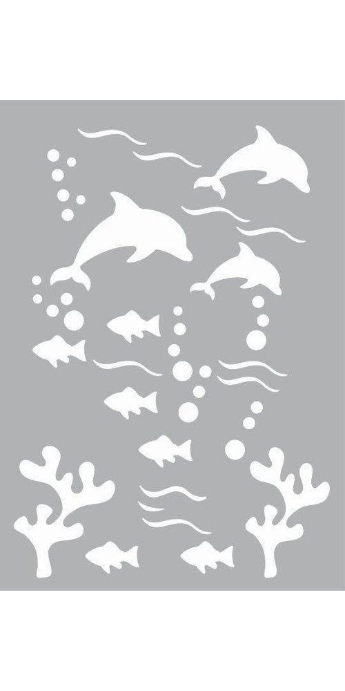 Tolle Schablone 'Unterwasserwelt' im DIN A5 Format für zahlreiche Deko-Projekte mit der Schablonier-Technik. Um ein verrutschen der Schablone zu vermeiden, sollte diese auf der Unterseite mit einem haftspray eingesprüht werden. Die Schablone nach dem Schablonieren gründliche mit Wasser und Seife reinigen.