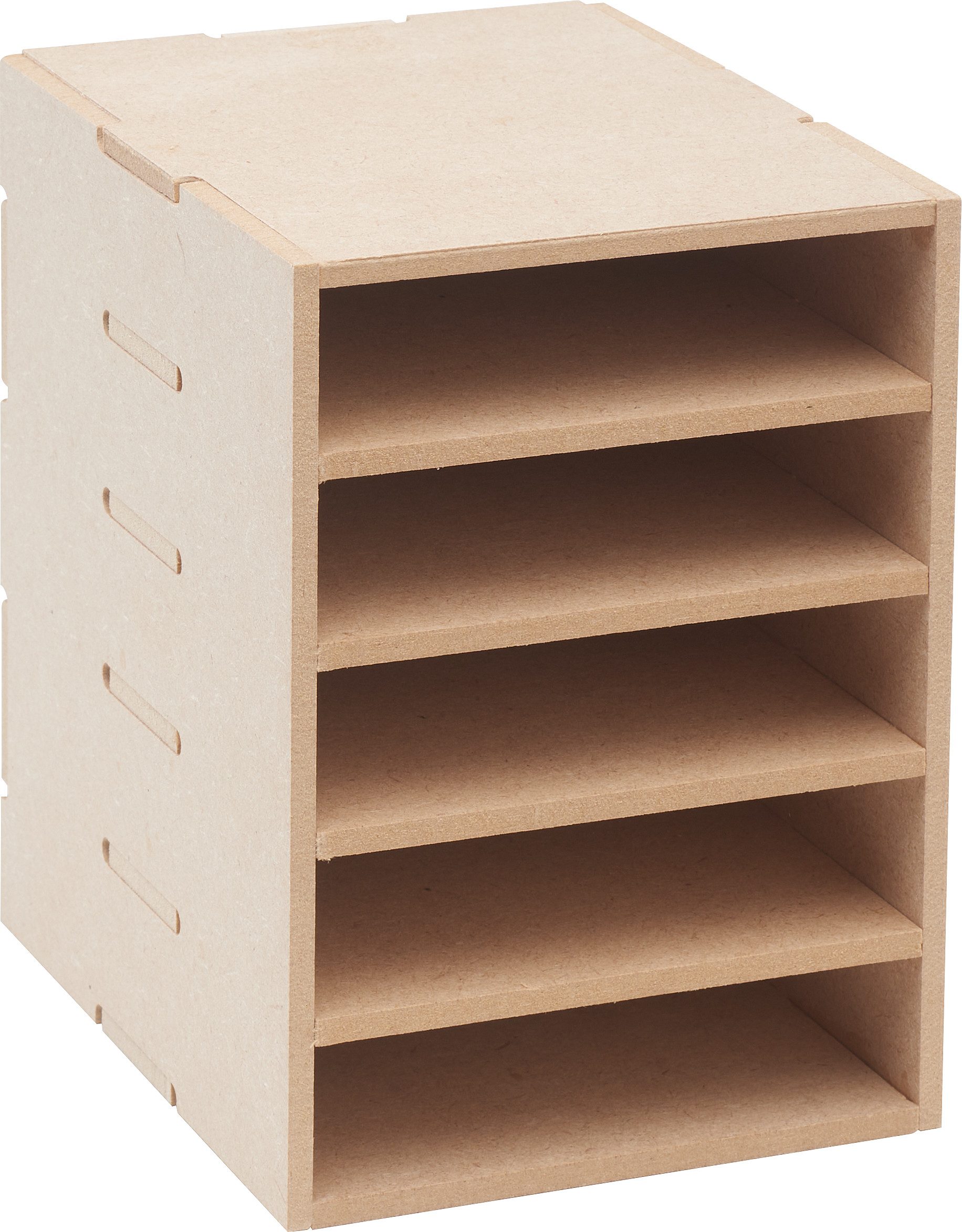 Mit der Flexio 'Regalbox' hast du die perfekte Lösung für die Aufbewahrung von Bastelmaterial, Büromaterial, Spielsachen, Kosmetik und vielem mehr. Der Bausatz besteht aus mehreren Teilen, die einfach zusammengesteckt werden. Du kannst die Box auch mit anderen Flexio Boxen kombinieren und so ein individuelles Regal mit verschiedenen Größen, Fächern und Boxen gestalten. Die Flexio 'Regalbox' besteht aus unbemaltem MDF-Holz und ist ein praktischer Organizer. Verleihe der Box deine persönliche Note, indem du sie mit Farben, Pasten, Servietten, Motivstrohseide, Papieren oder Sprays gestaltest. Einfach zusammenstecken und bei Bedarf mit Bastelkleber (nicht enthalten) fixieren. Perfekt für die individuelle Gestaltung. Freue dich auf eine platzsparende und individuelle Aufbewahrungslösung mit der Flexio 'Regalbox'!