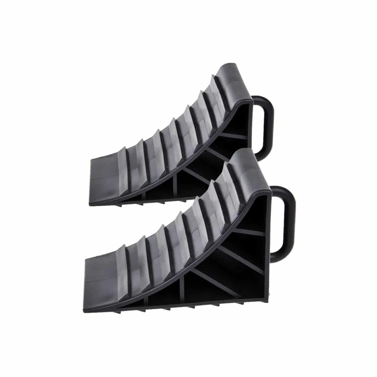 Unterlegkeile aus Kunststoff mit Griffen - 2 Stück im Blister. Stark und robust um hinter dem Reifen eines Fahrzeugs platziert zu werden. Verhindert dadurch unbeabsichtigte Bewegung des Fahrzeuges. Geeignet für Anhänger, Wohnwagen, Reisemobil und Autos.