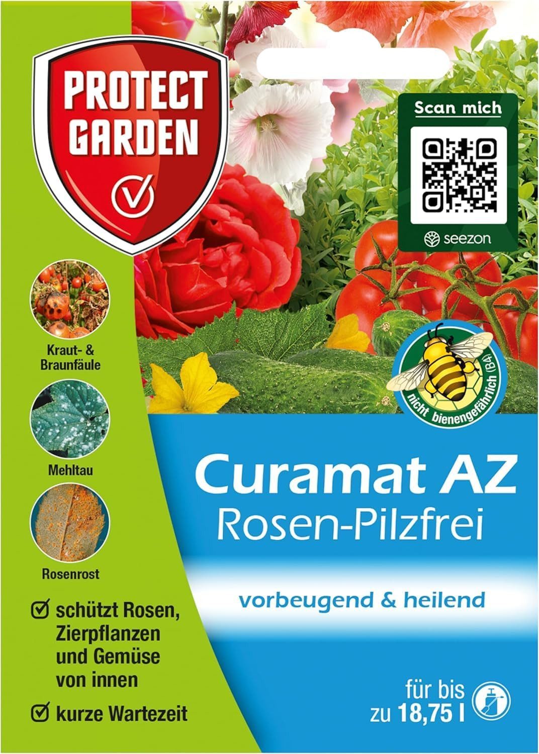 • Protect Garden Curamat AZ wirkt vorbeugend und heilend gegen eine Vielzahl an Pilzkrankheiten wie Echter Mehltau, Falscher Mehltau, Kraut- & Braunfäule, Rostpilze und Sternrußtau an Rosen sowie Pilzkrankheiten an Zierpflanzen und Gemüse.
