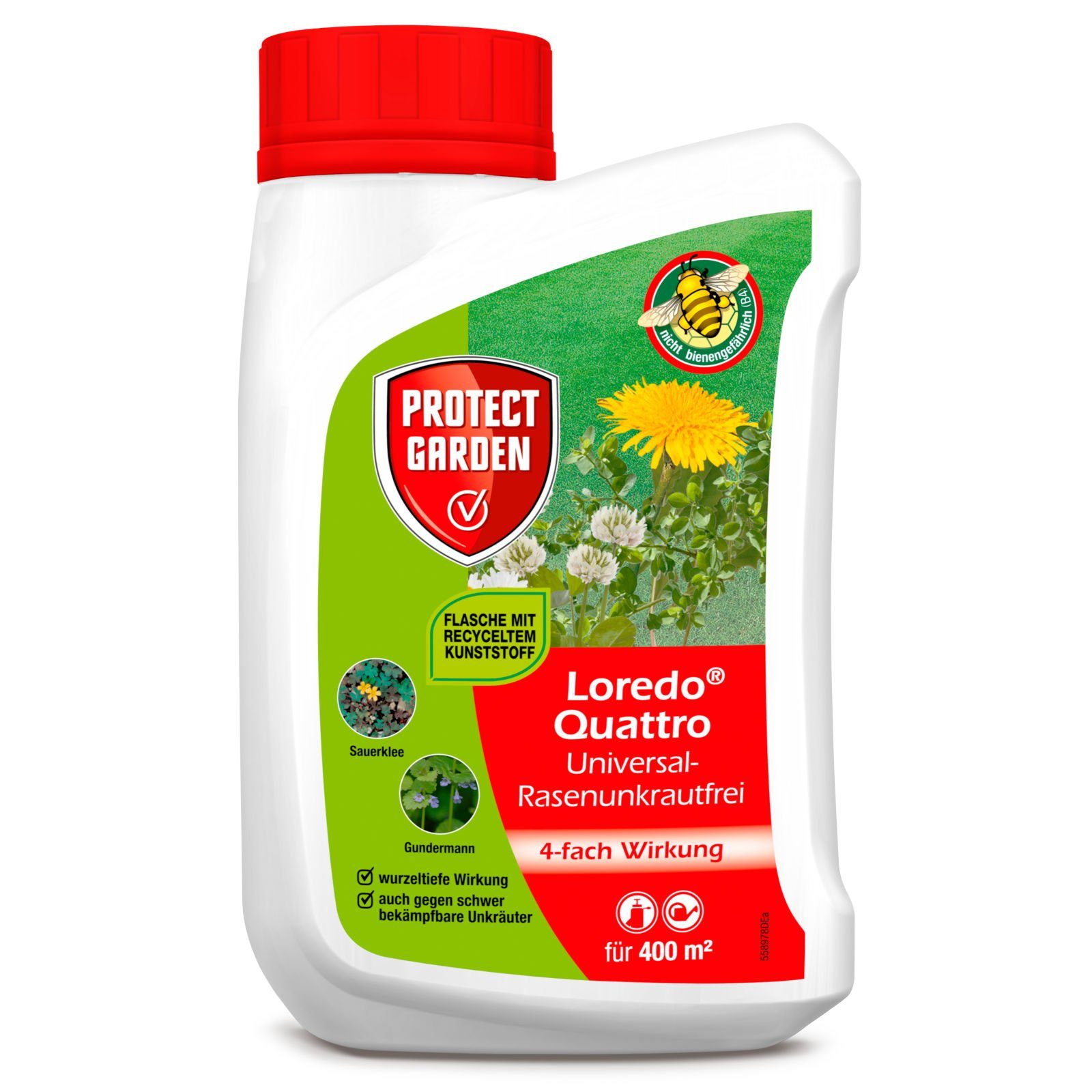 Beispiel 1 l Gießbrühe für 1 m² Fläche: 1 ml Garten Universal-RasenunkrautfreiLoredo® Quattro in 500 ml Gießwasser geben. Dosierbecher mit klarem Wassernochmals ausspülen, Spülwasser in die Kanne geben und mit der noch fehlenden Wassermenge auf 1 l ergänzen. Gießbrüheumrühren und mit einem Gießbalken oder einer Gießbrause auf verunkrauteter Rasenfläche von 1 m² ausbringen. Garten Universal-Rasenunkrautfrei Loredo® Quattro während der Wachstumsperiodean gut entwickeltem Blattwerk der Unkräuter anwenden. Zur sicheren Wirkungauf eine gleichmäßige Verteilung achten. 3 Tage vor und 4 Tage nach der Anwendungsollte der Rasen nicht gemäht werden. Das Produkt wirkt bei Temperaturen ab ca. 10°C und sollte nicht bei Temperaturen über 25 °C ausgebracht werden. Beim Einsatz von Garten Universal-Rasenunkrautfrei Loredo® Quattro müssen die Blätter trocken sein und nach der Anwendung für einige Stunden (6 Stunden) trocken bleiben.
