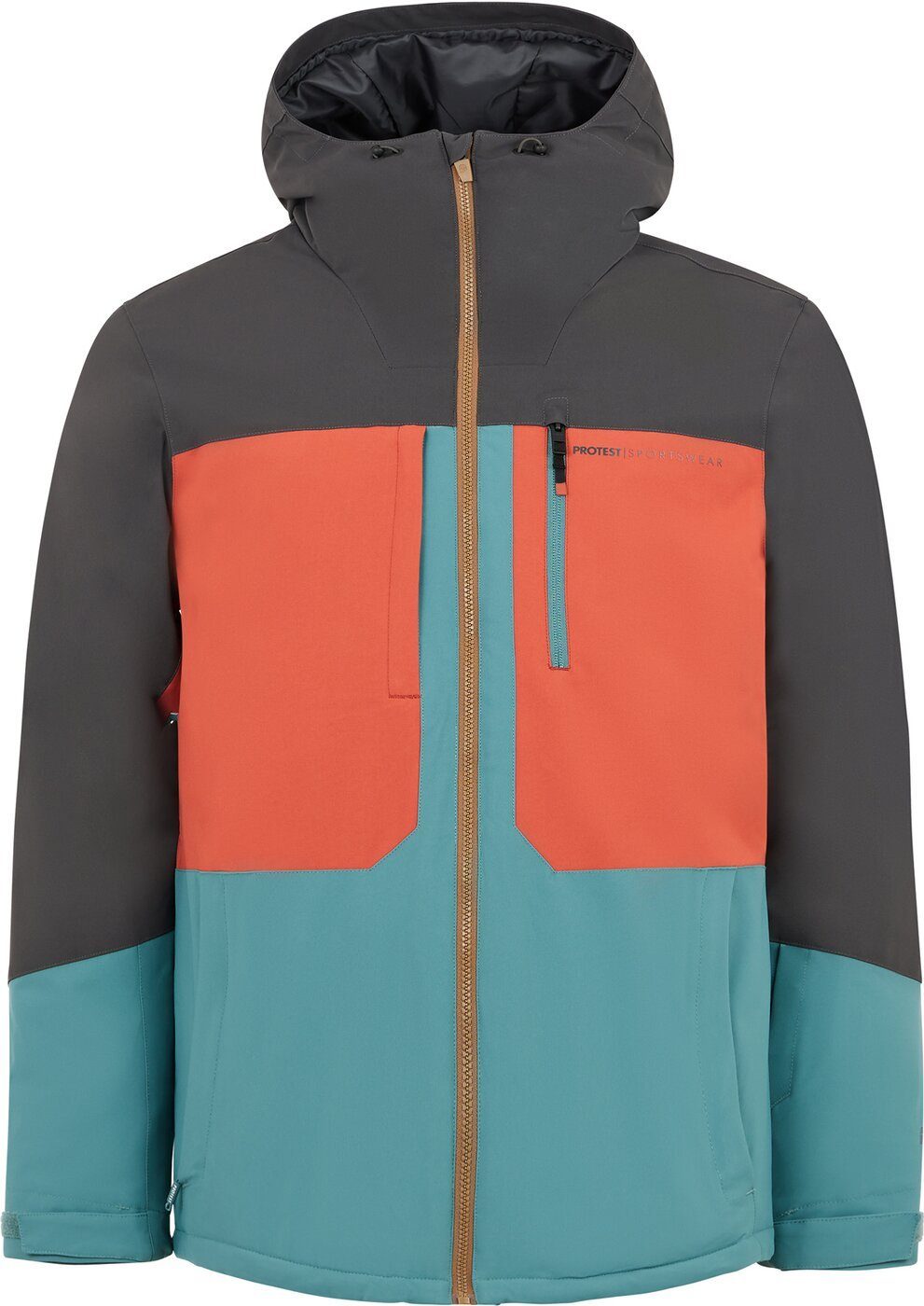 Mit der schicken PRTPOMANO von Protest bist du bereit für die Piste. Diese Schneejacke ist mehr als nur ein schickes Kleidungsstück, denn sie hat außerdem zahlreiche funktionale Features, die den ganzen Tag lang für Komfort und Schutz sorgen. Und da die Beschichtung unter umweltfreundlichen Gesichtspunkten aufgetragen wird (bei der Herstellung dieser Schneejacke wurden keine PFC verwendet), tust du auch etwas Gutes für die Umwelt. Die PRTPOMANO präsentiert sich mit sportlich-stilvollem Farbblockdesign, mit dem du auf der Piste besonders cool aussehen wirst. Die verklebten kritischen Nähe, der Schneefang, Widerstand gegen eine Wassersäule von 10.000 mm und eine Atmungsaktivität von 10 g sorgen dafür, dass du auch nach mehreren Stürzen trocken bleibst. Die feste Kapuze und der hohe Kragen bieten zusätzlichen Schutz vor den Elementen. Mit den vielen Reißverschlusstaschen, darunter auch eine Skipasstasche und eine Brillentasche, hast du immer alles griffbereit, was du brauchst. Die Bündchen mit Klettverschluss sorgen für sicheren Sitz, die Innenbündchen haben praktische Daumenlöcher. Die Belüftungsreißverschlüsse unter den Ärmeln helfen dir dabei, deine Körpertemperatur zu regulieren. Die PRTPOMANO hat eine normale Passform und Длина. In der PRTPOMANO bleibst du warm und trocken und siehst immer gut aus.