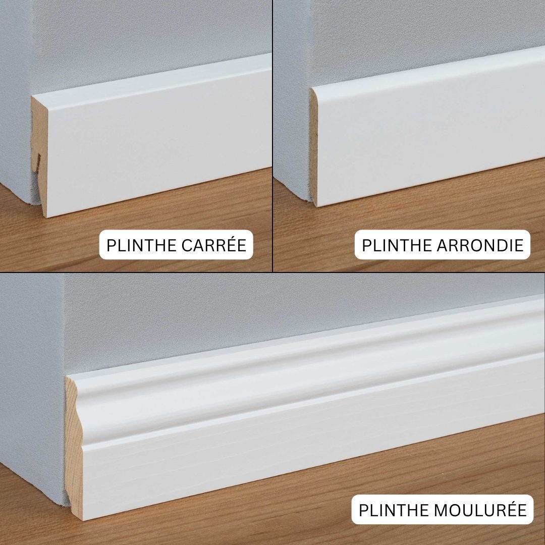 Montieren Sie die Sockelleiste durch Kleben, Schrauben/Nageln. Verwenden Sie Universal-Holzecken für perfekte Eckenabschlüsse.