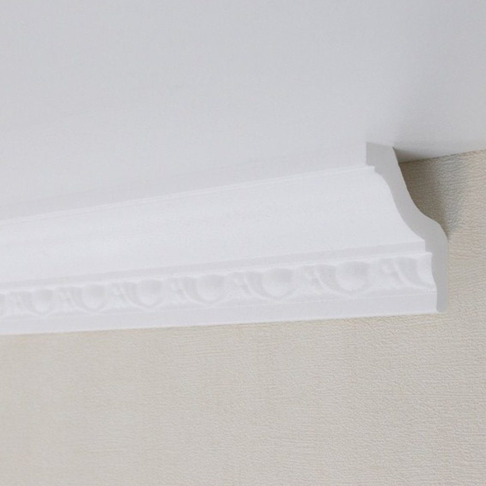 Die Deckenleiste ist bereits vorgrundiert und kann mit je nach Bedarf in Deinem Wunschfarbton überstrichen werden.