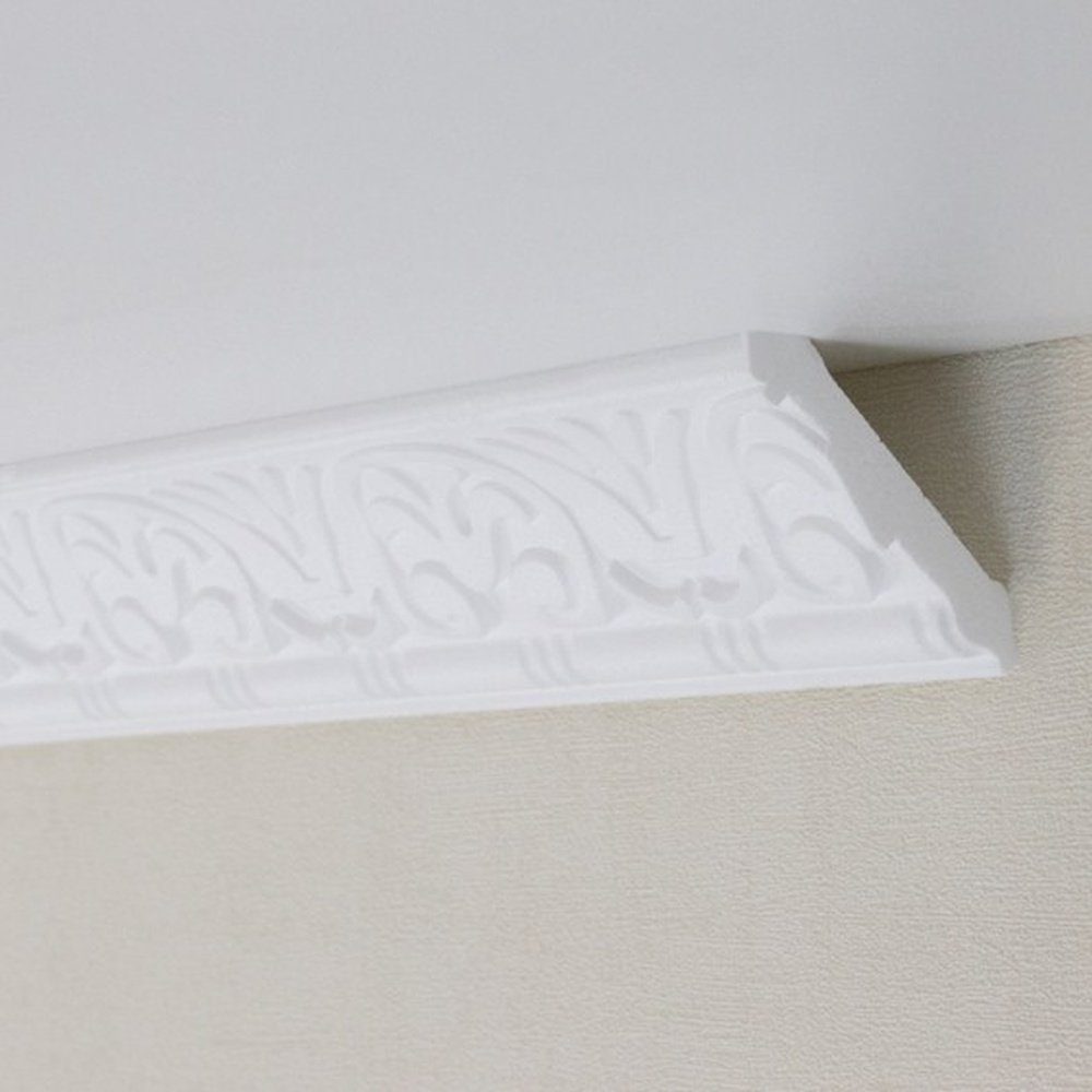 Die Deckenleiste ist bereits vorgrundiert und kann mit je nach Bedarf in Deinem Wunschfarbton überstrichen werden.