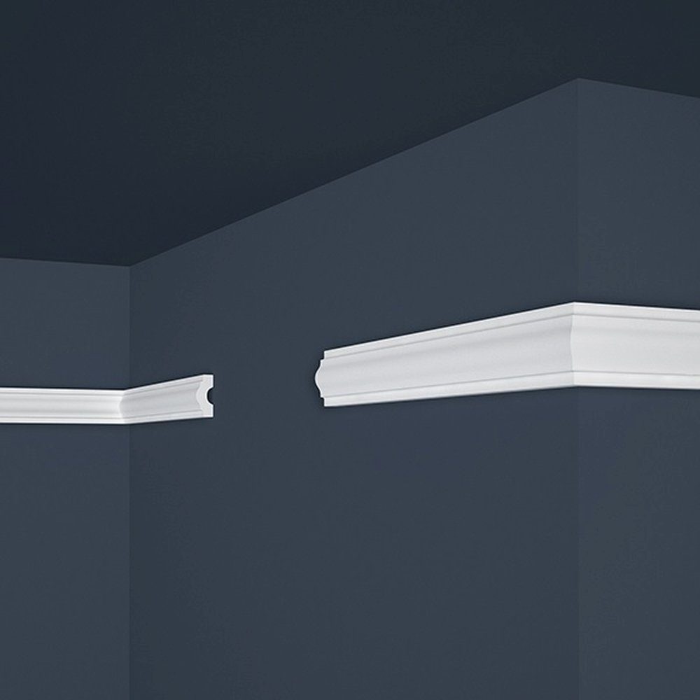 Das Anbringen der Zierleisten ist unkompliziert. Die Leisten lassen sich mit dem passenden Montagekleber einfach und sauber an Wand oder Decke befestigen. Damit die Leisten fest und sicher halten, muss der Untergrund trocken, staubfrei und tragend sein. Das Material lässt sich mit der Säge leicht zuschneiden. Beim Zuschnitt für die Innen- und Außenecken empfehlen wir die Verwendung einer Gehrungslade.