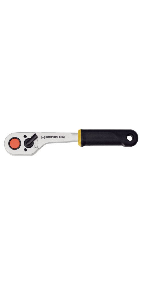 Mit makelloser Verzahnung: Mehrere der 72 Zähne rasten gleichzeitig ein und übertragen ein extremes Drehmoment. Umschalthebel für Rechts- und Linkslauf. Entriegelungs-Mechanismus: Lösen der Einsätze durch Knopfdruck. Kopf und Schaft aus einem Stück CrV-Stahl geschmiedet. 2x vernickelt und matt-verchromt. Griff aus öl- und säurefestem TPR (Thermoplastic Rubber) mit praktischer Bohrung zum Aufhängen.