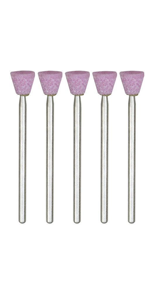 Schleifer aus feinen, hochwertigen Materialien mit gleichmäßiger Härte. Verschiedene Formen für breiten Anwendungsbereich. Zum Schleifen und Ziselieren von harten Werkstoffen wie Gusseisen, Stahlguss, Temperguss, legierten und vergüteten Stählen. Maßgenaue Schäfte sorgen für ordentlichen Rundlauf. Die Schäfte haben einen Durchmesser von 2,35 oder 3.