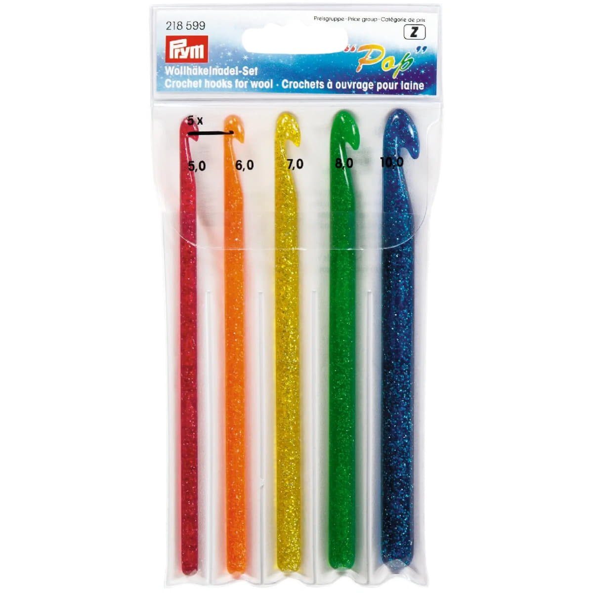 Set bestehend aus 5 stabilen Häckelnadeln aus hochwertiger Kunststoff, mit Glitzerpartikeln im Inneren in 5 Farben und 5 Stärken Für kleine und große Häckelfanns, Glatte Oberfläche ernöglicht optimales Gleiten des Garns. Größen: 5,0mm, 6,0mm, 7,0mm, 8,0mm, 10,0mm Длина: 18cm.