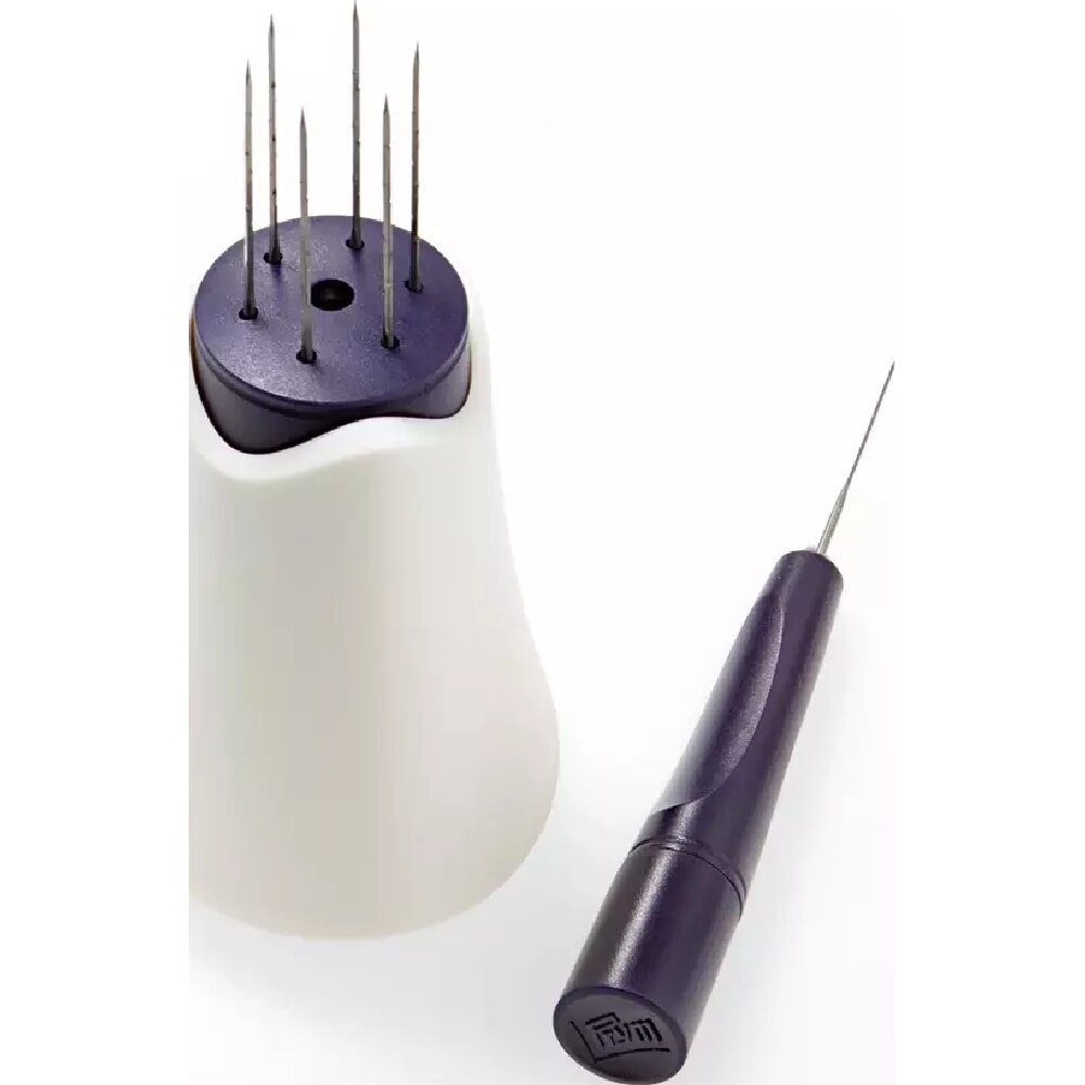 Das ergonomische Filznadelgriffset für Trockenfilzen Set besteht aus drei Komponenten, die für die Arbeit mit den Filznadeln und deren Aufbewahrung unterschiedlich zusammengesteckt werden können. Der 6-fache Nadelhalter und der Griff für eine einzelne Nadel können zu einem Werkzeug mit maximal sieben Nadeln ineinander gesteckt werden. Die Einer-Version mit seiner ergonomisch geformten Griffmulde kann für die Detailarbeit separat verwendet werden. Zum Filzen, als Schutzkappe und zur sicheren Aufbewahrung dient der ergonomische Griff aus weißem, weichen Kunststoff. Auf der Rückseite der Verpackung finden Sie eine ausführliche Anleitung, die das Wechseln der Nadeln und alle Funktionen erklärt. Geeignet für Filznadeln der Длина 78 bis 90 mm geeignet.