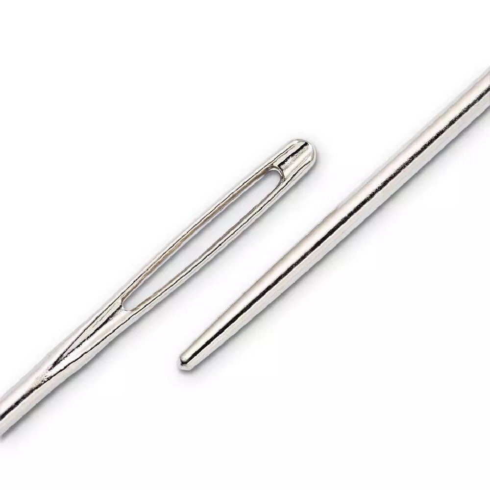 Woll- Smyrna-Nadeln mit abgerundeter Spitze gefertigt aus rostfreiem Stahl für die Arbeit an Smyrna-Teppichen; Größe1; 70 x 2,4 mm; mit großem Silberöhr, Inhalt: 25 Stk.