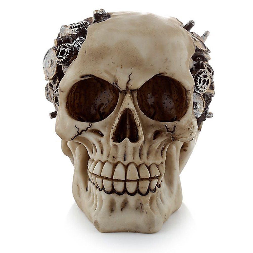 Puckator Fantasy-Figur Gothic Steampunk Totenkopf, Zahnräder am Schädel, Skull, Horror, Sammlerfigur, Steampunk