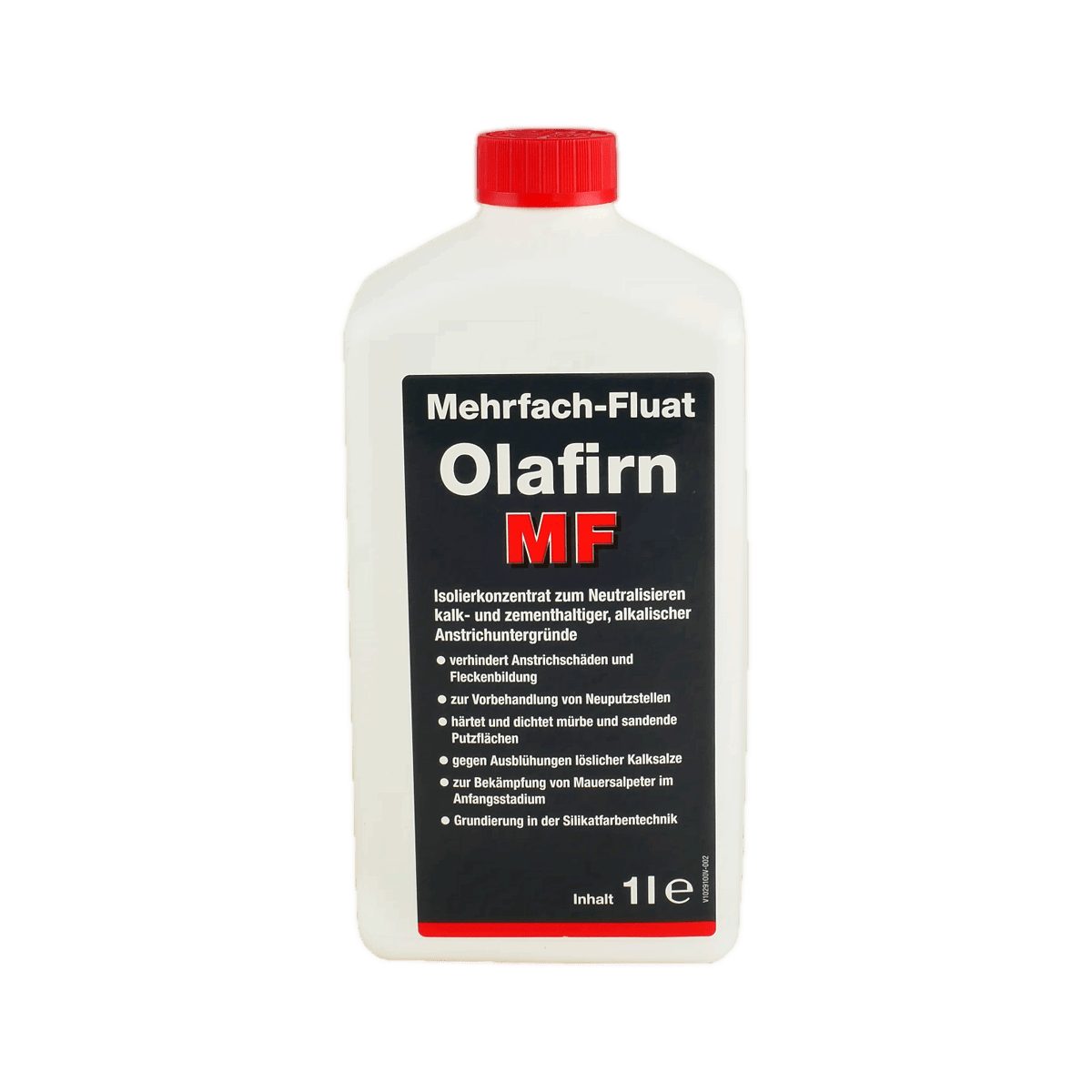 Zur Isolierung, Verdichtung und Neutralisierung alkalischer, kalk- und zementhaltiger Untergründe. Durch das Fluatieren werden Schäden und Flecken an nachfolgenden Anstrichen verhindert, Kalkausblühungen entfernt und eine neue Ausblühung vorgebeugt. Das Konzentrat wird im Verhältnis 1:4 mit Wasser gemischt. Kann auch als Grundierung in der Silikatfarbentechnik genutzt werden.