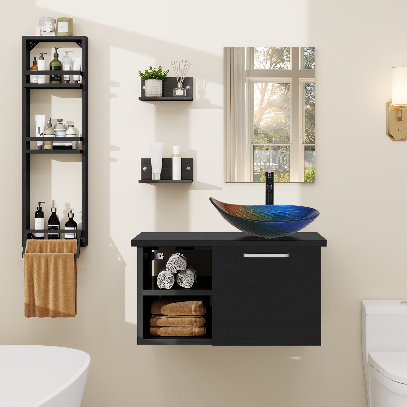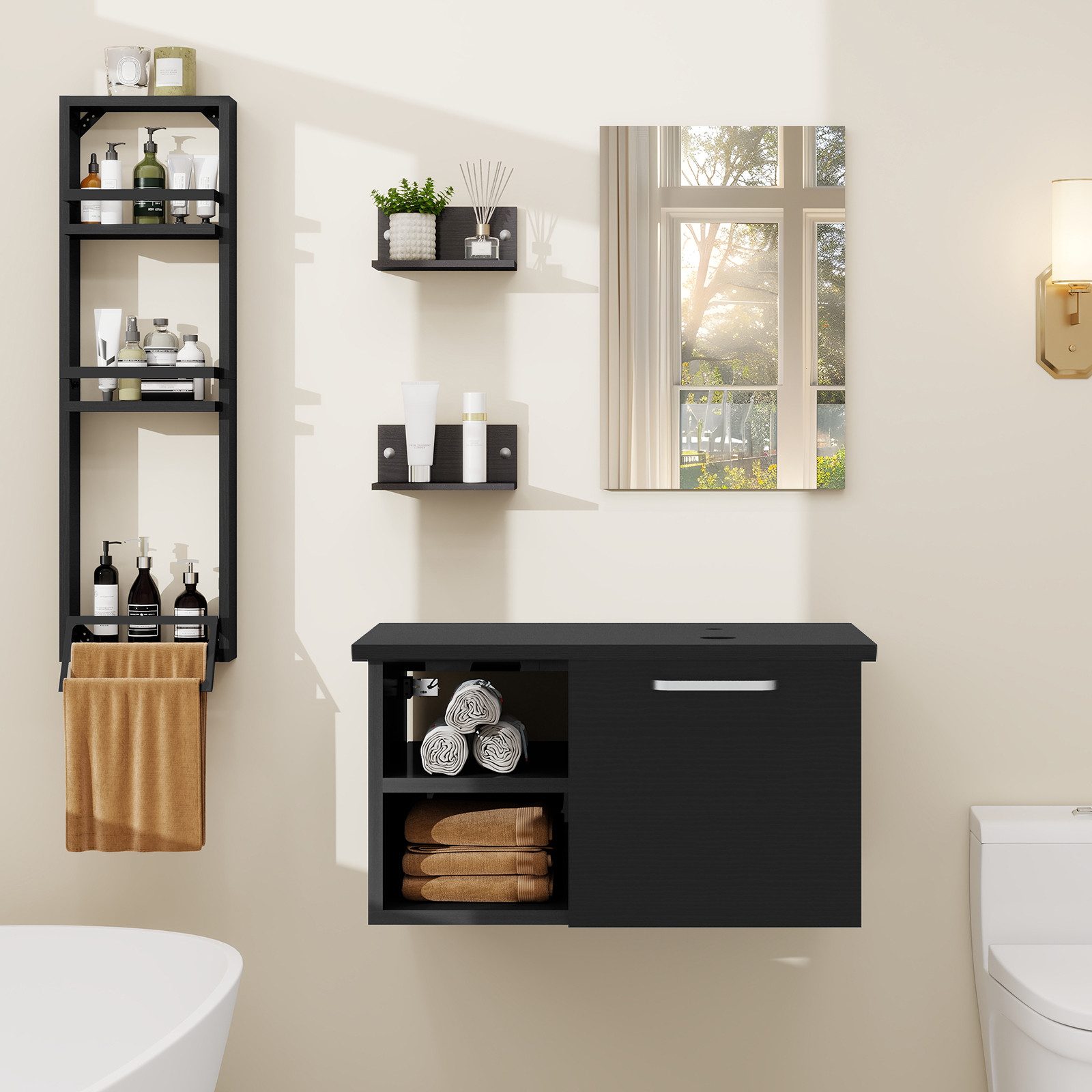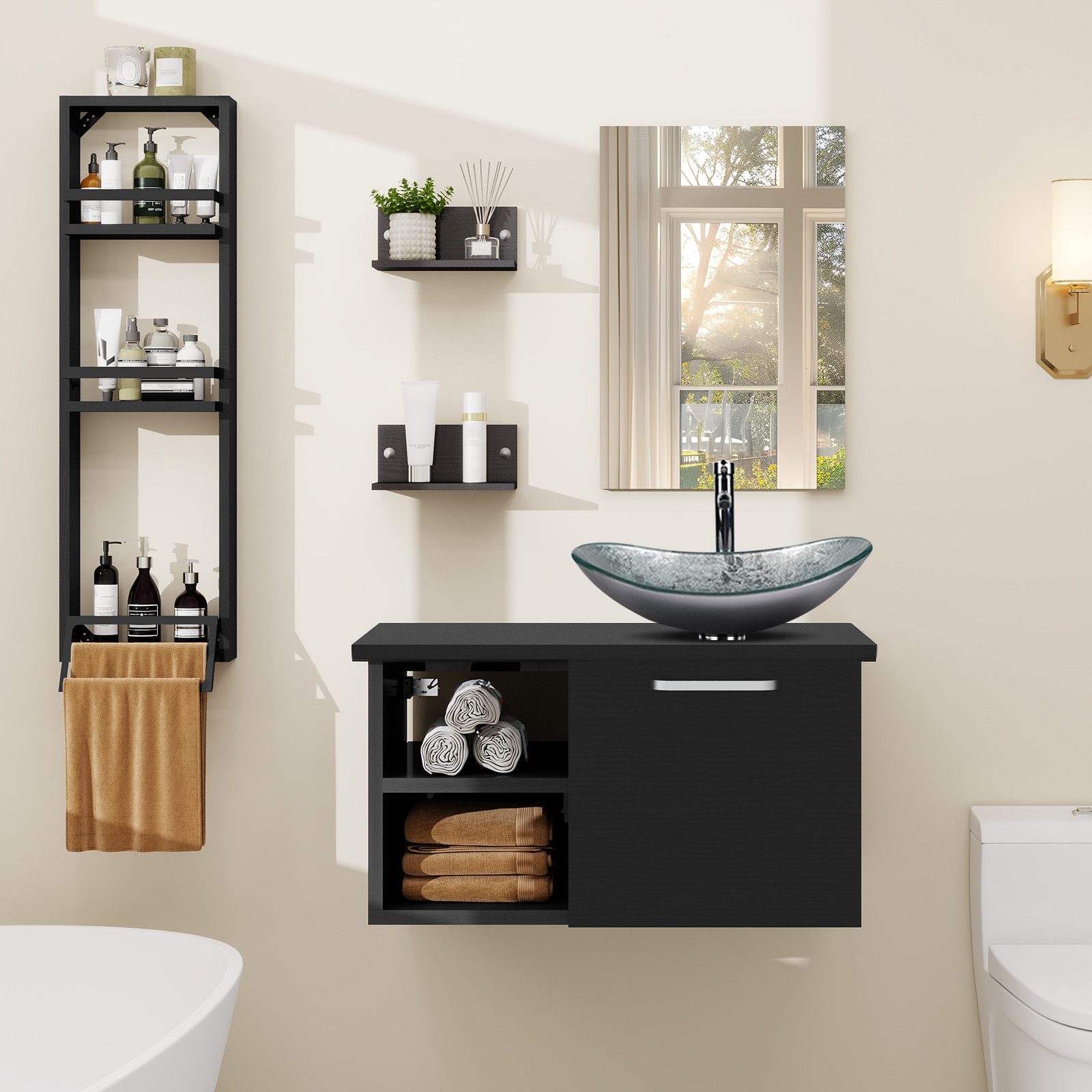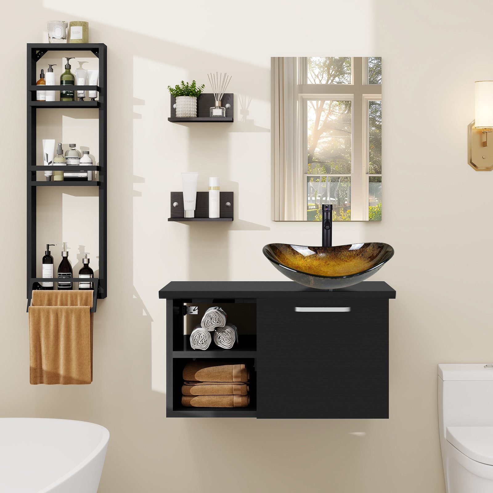 Lieferumfang | Eines enthält: ein 3-stufiges Duschregal mit Handtuchhalter, eines enthält: 1 Badezimmerschrank, 1 Spiegel und 2 Wandregale, eines enthält: 1 Waschbecken, 1 ORB-Hahn und Pop-up-Drain, 1 Warm- und Kaltwasserleitung( Wenn Sie das Set mit Waschbecken bestellen) |