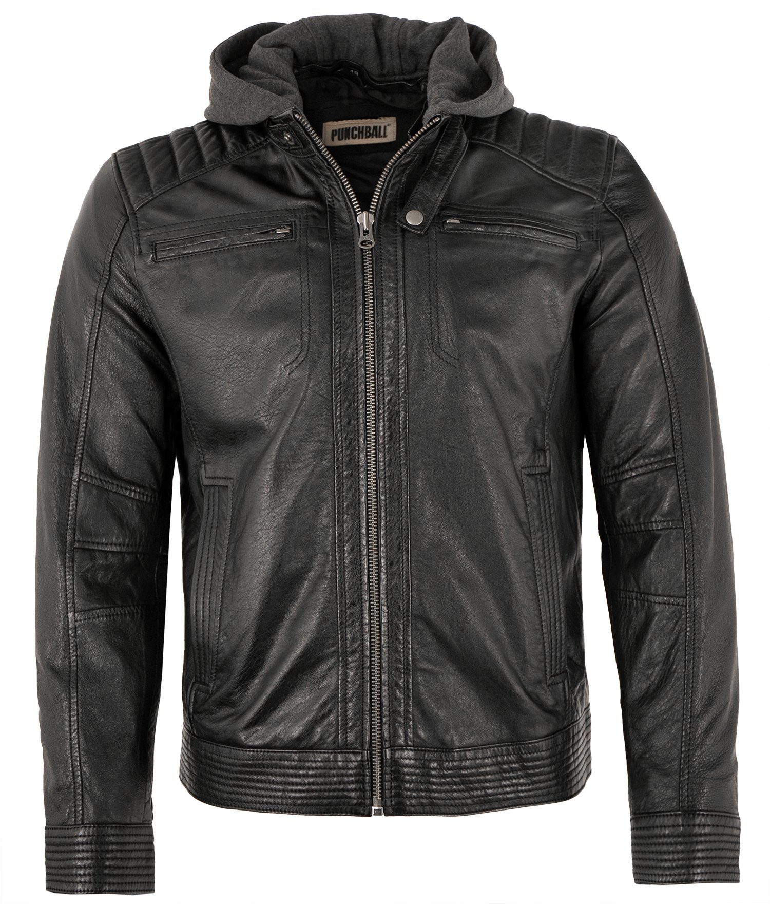 Besondere Merkmale | Punchball - Herren Lederjacke Bikerjacke Kapuze Lammnappa schwarz |