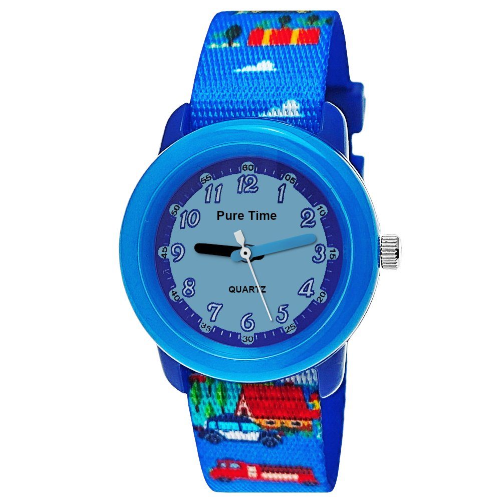 Diese trendigen PURE TIME Kinderuhren begeistern mit farbenfrohen Designs und robustem Tragekomfort. Das widerstandsfähige Polyester-Armband und das stabile Polycarbonatgehäuse machen die Uhr zum idealen Begleiter für jeden Tag. Ein cooles Accessoire, das Kinder stolz trägt und lieben wird!