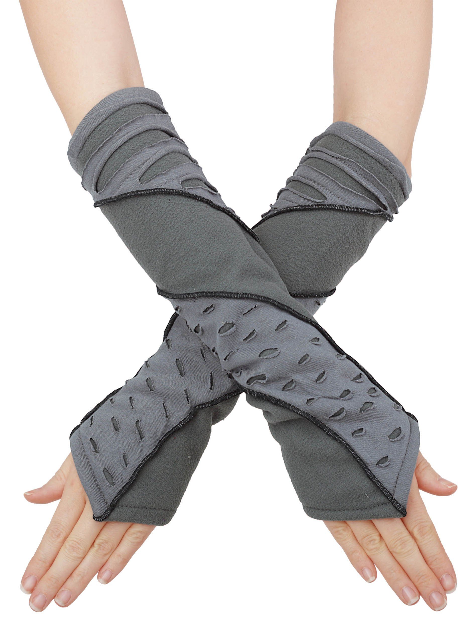 Die Armstulpen aus Fleece und Jersey können als Handwärmer bzw. Pulswärmer oder einfach nur als Blickfang getragen werden. In Sommer wie Winter. Der Stoff der Handstulpen ist flexibel, sie passen sich damit an durchschnittliche Armgrößen an. Die Einheitsgröße macht sie auch zur prima Geschenkidee. Die Handstulpen wurden in einer kleinen Firma in Nepal gefertigt.