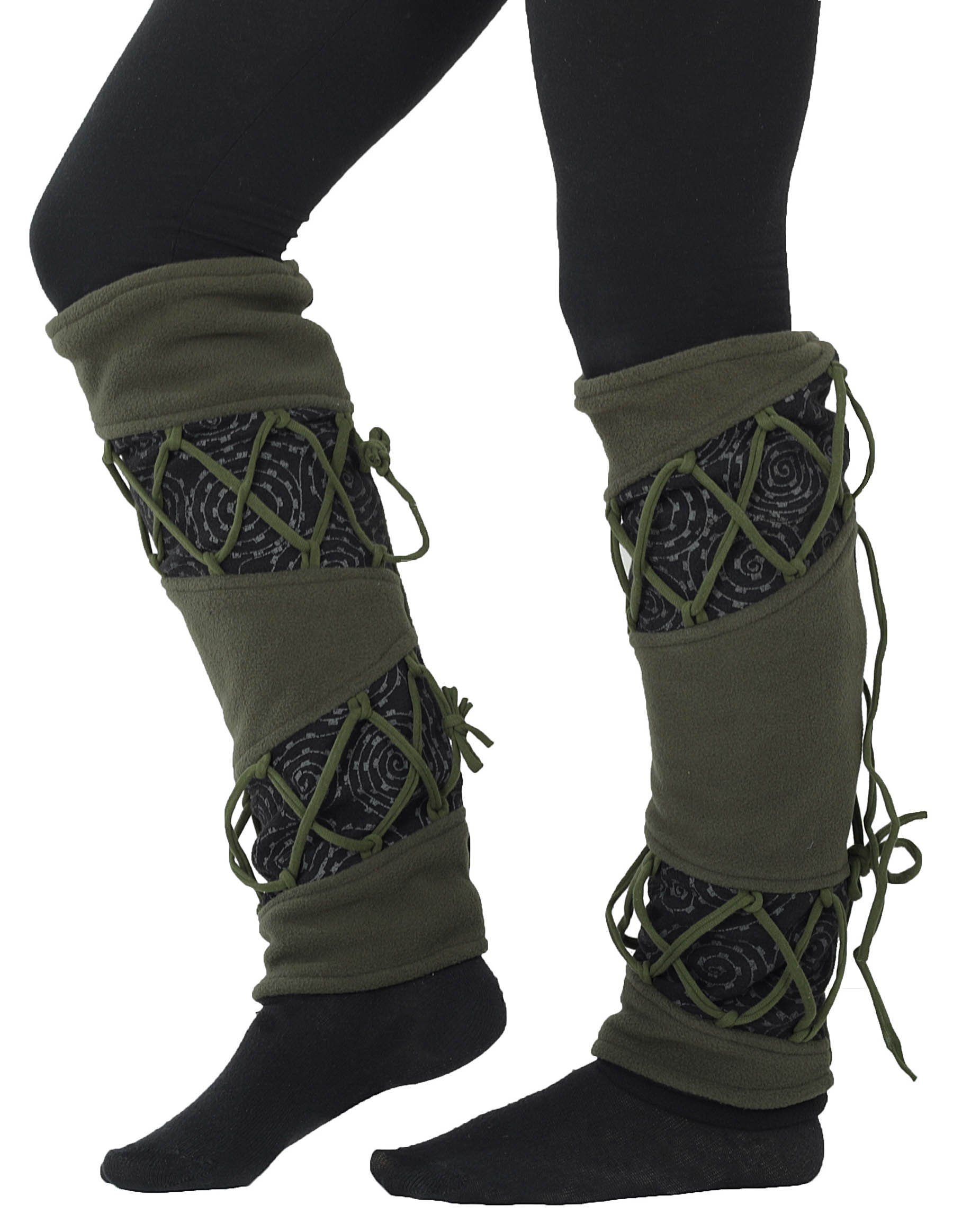 Die Beinstulpen aus Fleece mit Schnürung sind Beinwärmer und Blickfang zugleich. Sie passen sich an durchschnittliche Beingrößen an und haben Einheitsgröße. Der Maximaler Wadenumfang beträgt ca. 30 cm. Der Umfang im oberen Bereich der Stulpen ist bis ca. 40 cm dehnbar.