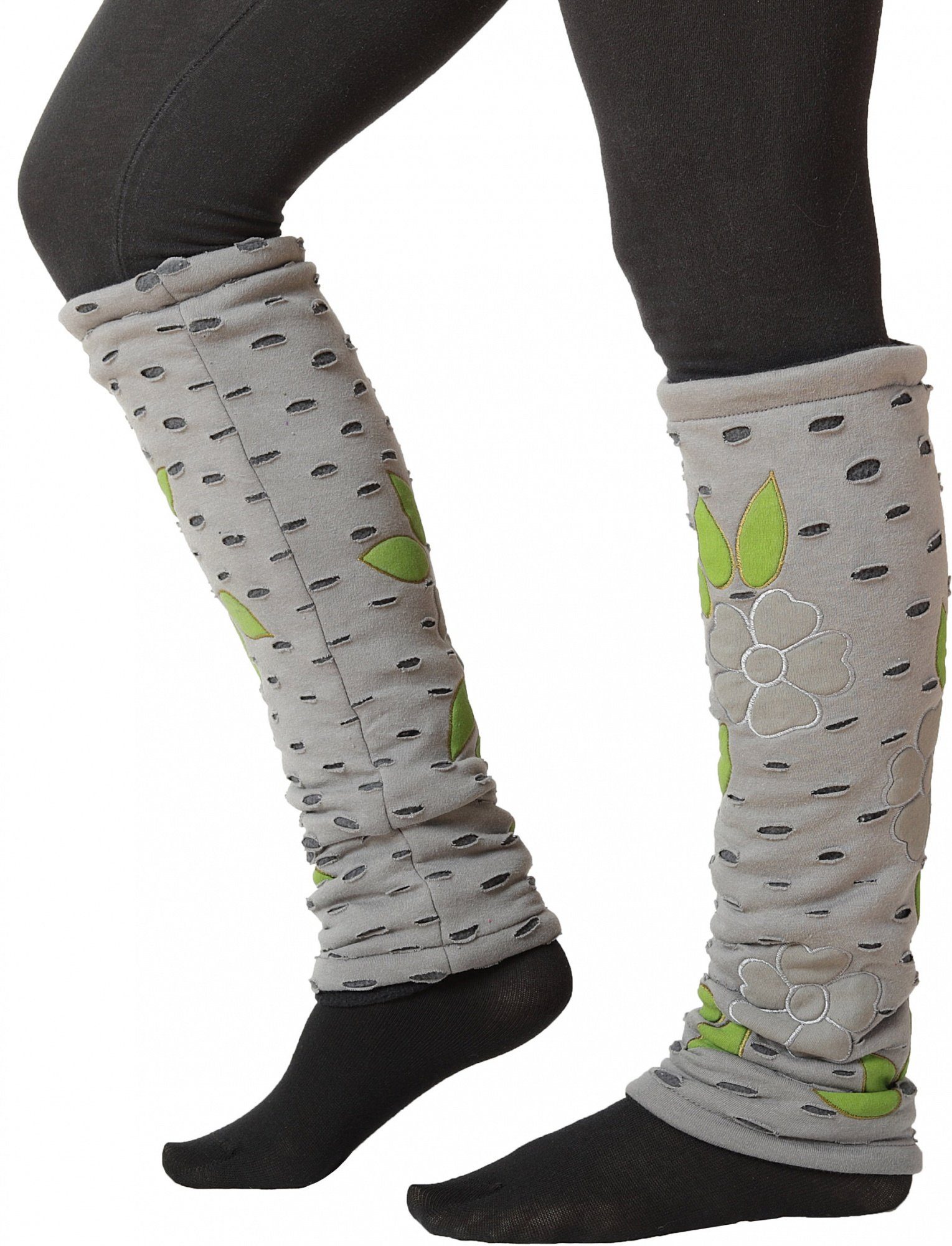 Die Patchwork-Beinstulpen aus Fleece und Jersey sind Beinwärmer und Blickfang zugleich. Sie passen sich an durchschnittliche Beingrößen an und haben Einheitsgröße. Der Maximaler Wadenumfang beträgt ca. 30 cm. Der Umfang im oberen Bereich der Stulpen ist bis ca. 40 cm dehnbar.