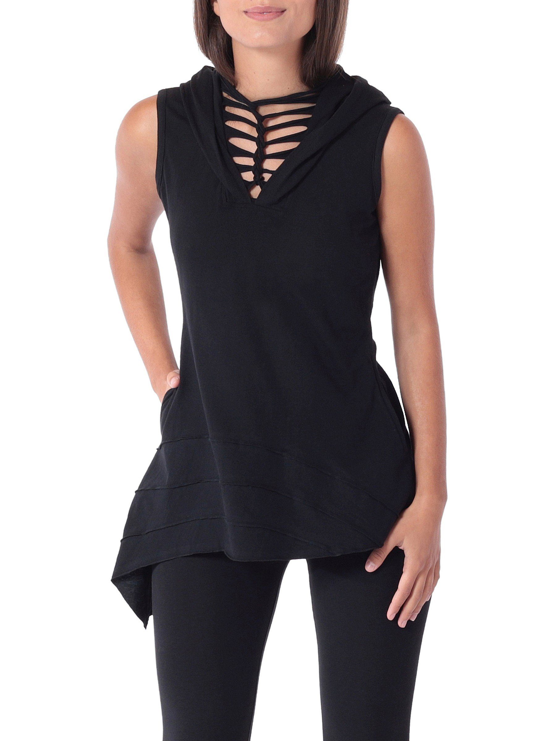 Die ärmellose Tunika aus leichtem Jersey mit Kapuze, Flechtung im V-Ausschnitt und Taschen ist ein prima Sommerkleid. Hergestellt wurde das alternative Kleid in Handarbeit in einer kleinen Firma in Nepal aus 100 % Baumwolle.