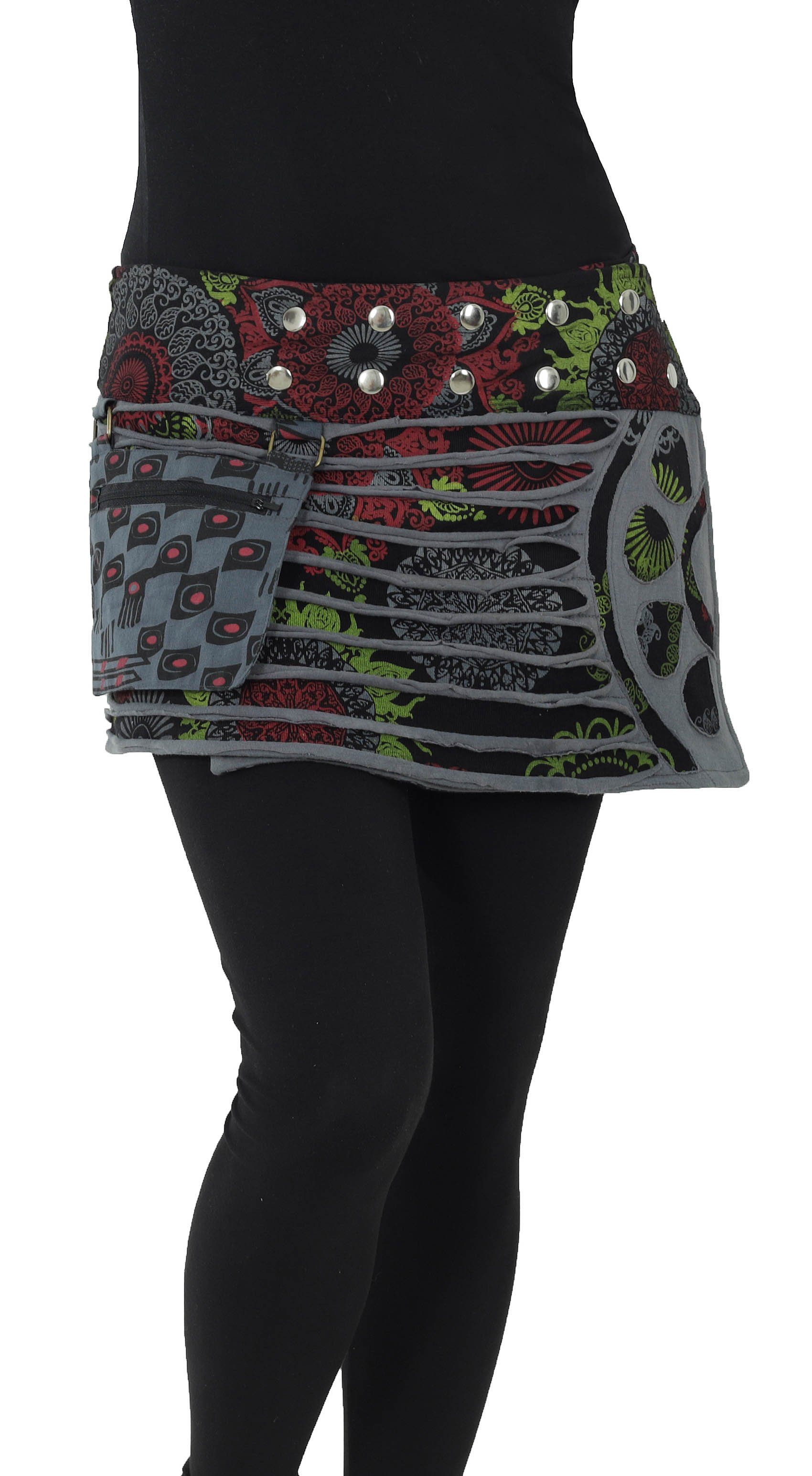 Der Wickelrock mit Patchwork besteht aus 100 % Baumwolle.