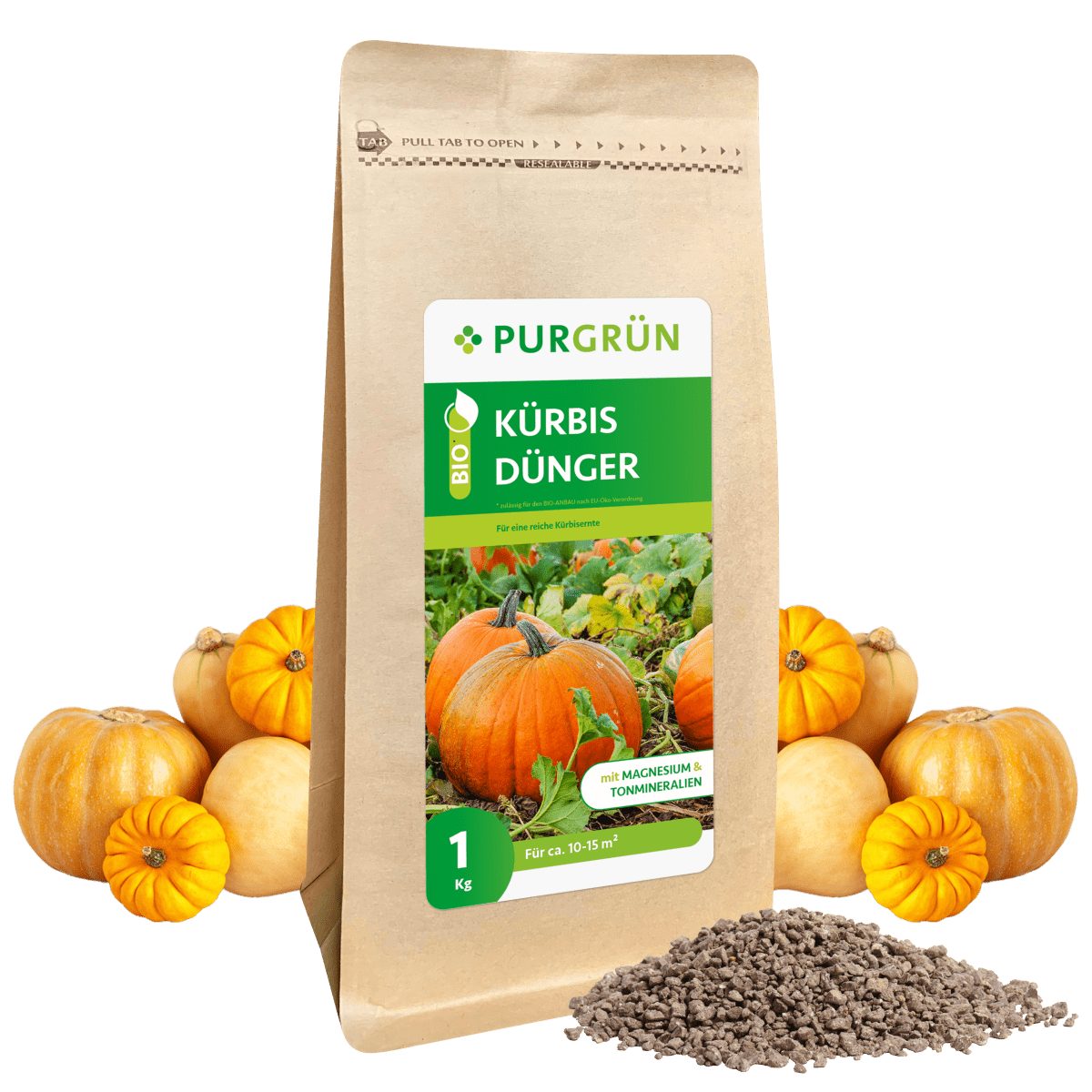Mit einem hohen Kaliumanteil verbessert der Purgrün Bio-Kürbisdünger die Fruchtausbildung und garantiert eine üppige, schmackhafte Ernte.