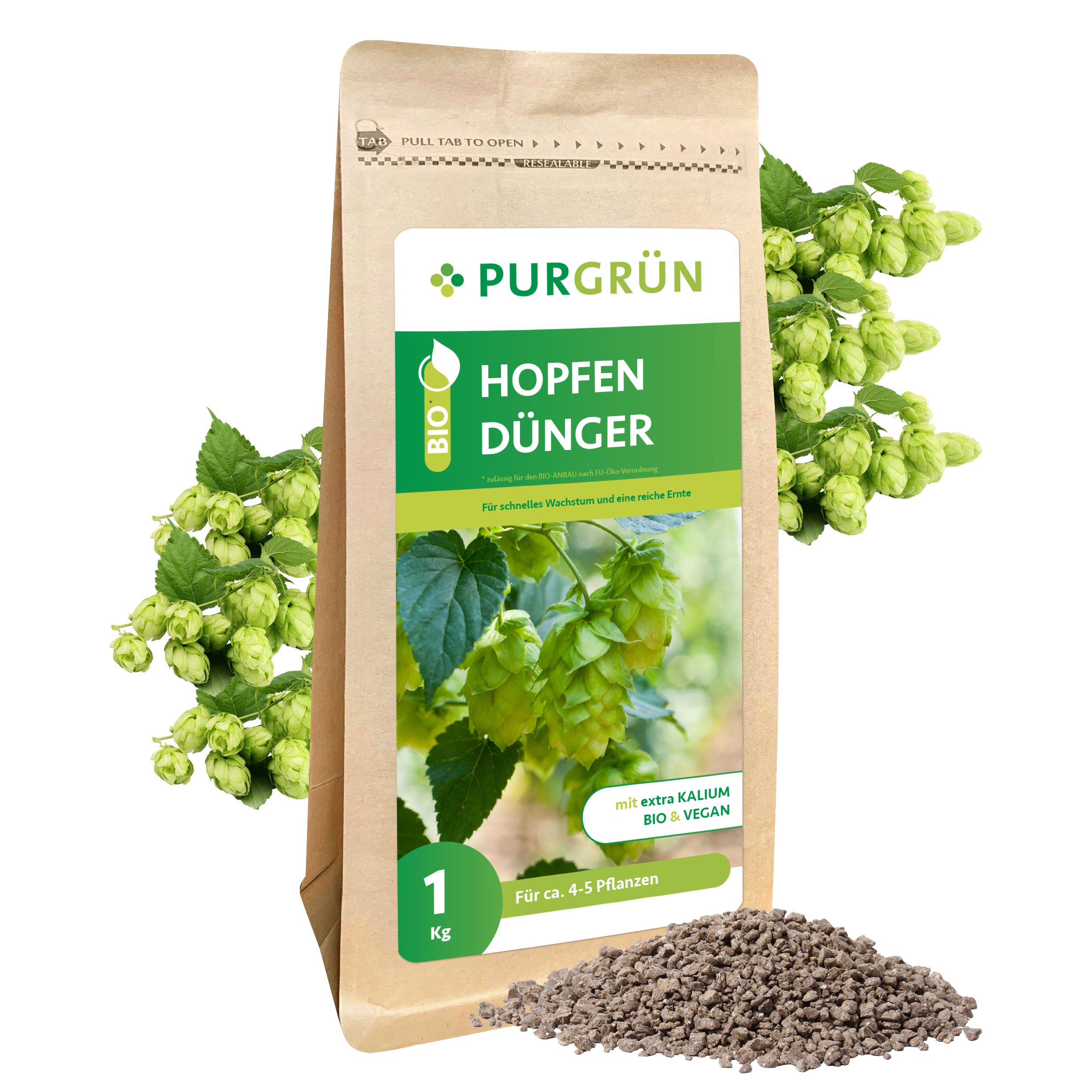 Der Purgrün Bio-Hopfen-Dünger unterstützt mit seiner speziell entwickelten Zusammensetzung aus rein natürlichen Komponenten das Wachstum und die Gesundheit Ihrer Hopfenpflanzen. Durch den hohen Kaliumgehalt fördert er die Ausbildung kräftiger Triebe und verbessert die Struktur von Stängeln und Blättern.