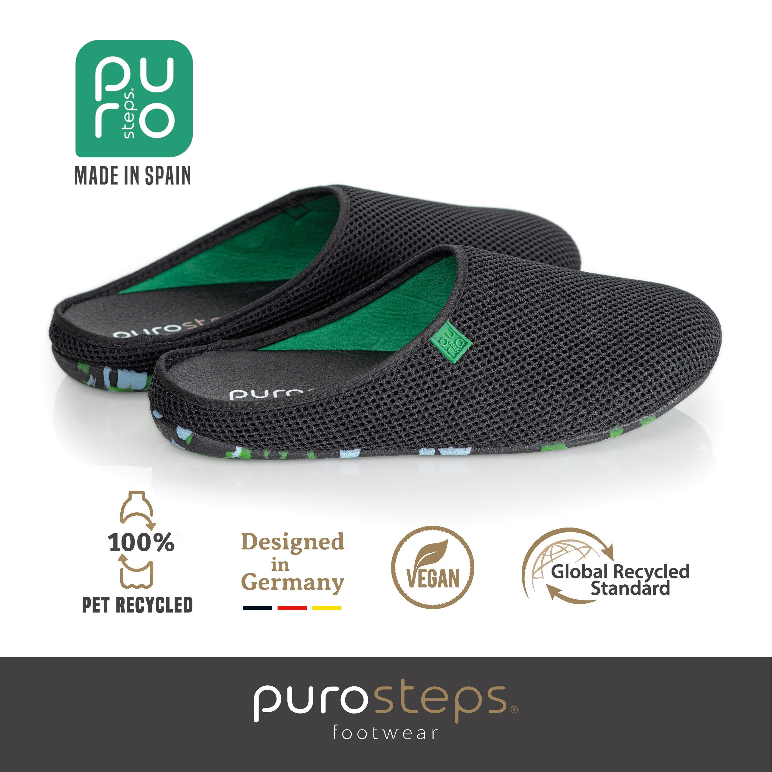 Besondere Merkmale | Hergestellt aus recycelten PET Flaschen, Handgefertigt, Naturkautschuk |