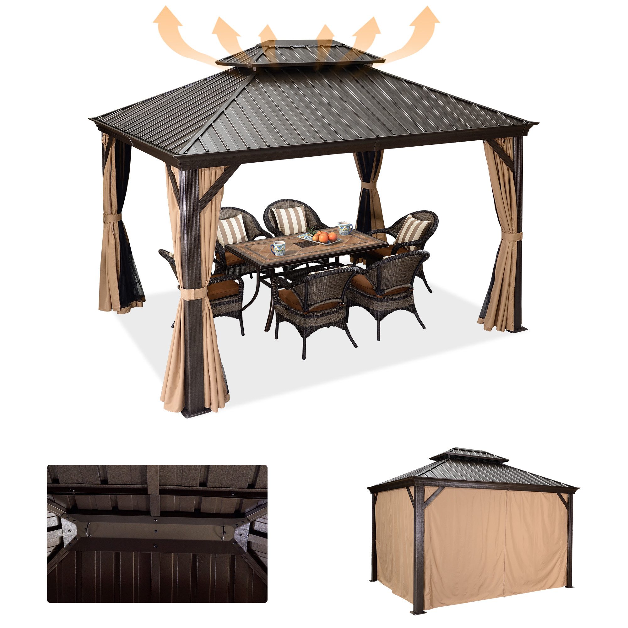 Pavillon Außenbereich Alu Gartenpavillon mit Stahldach Hardtop und Seitenteile