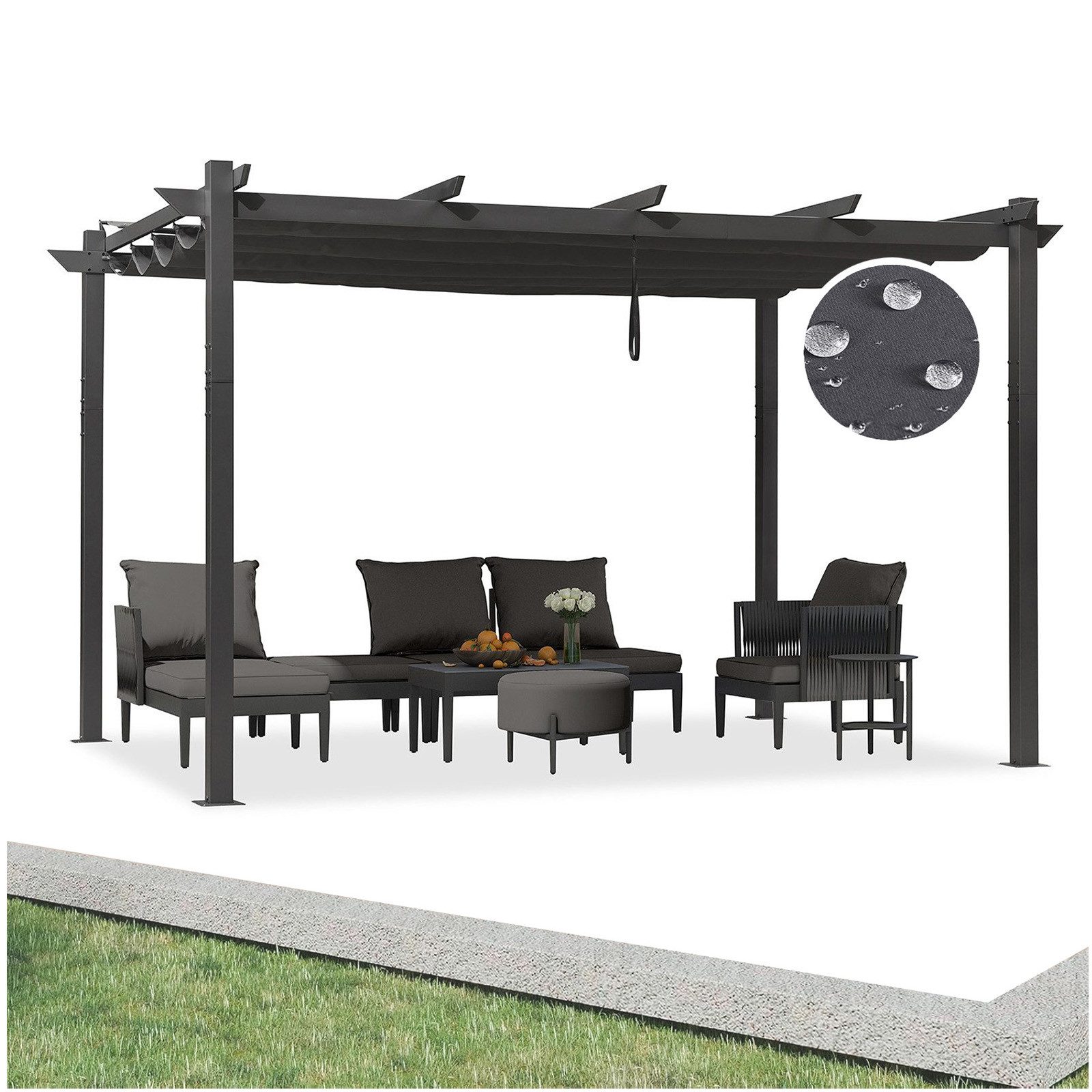 -Die white pergola dicken Säulen und das schlichte graue Finish sorgen für einen besonderen Reiz. Der kompakte und leicht aufzubauende Pavillon nutzt den begrenzten Platz effizient aus.