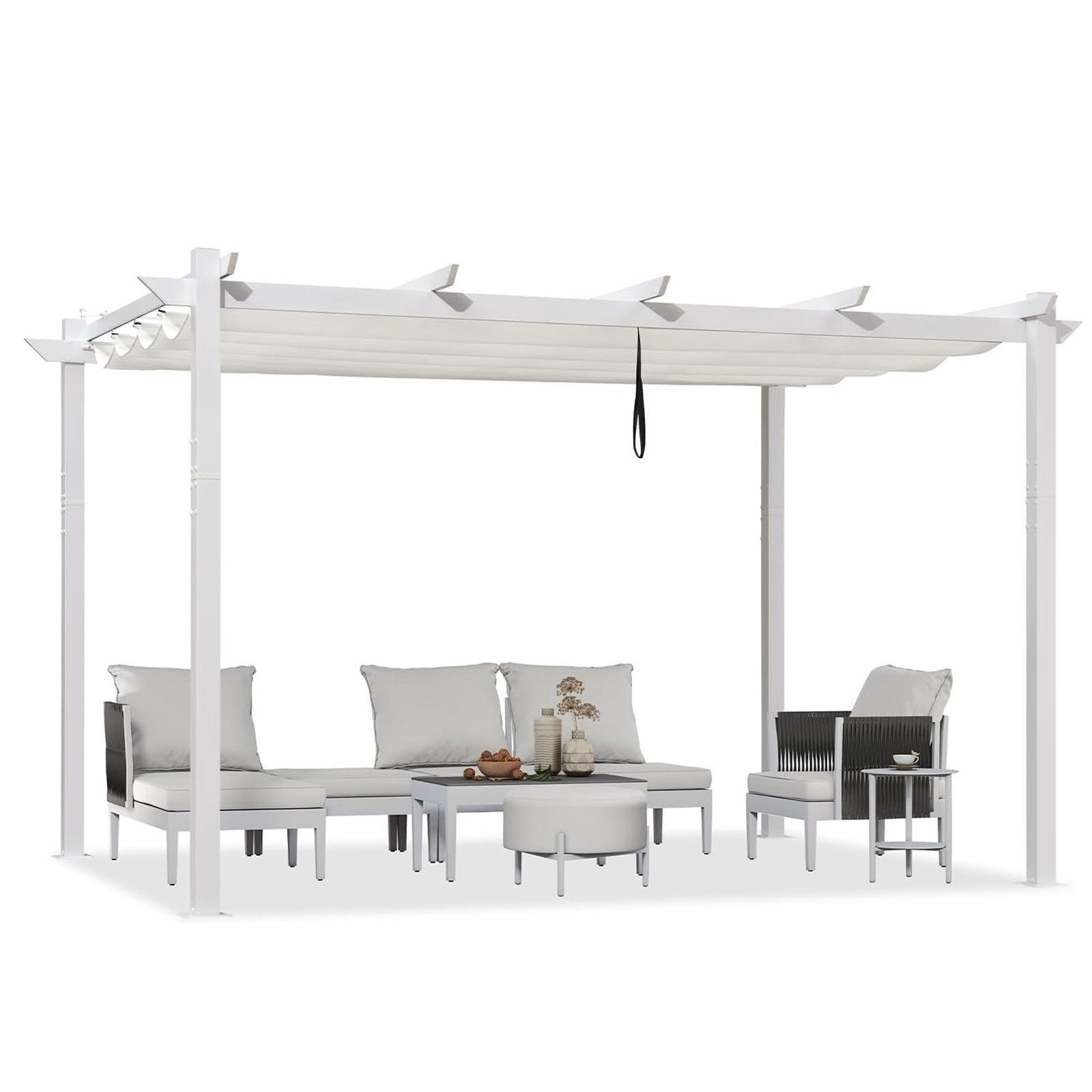 -Verstellbares Vordach: Sie können das pavillon mit schiebedach aluminium mit dem Verschlusssystem in die gewünschte Position bringen, wodurch Sie den schattigen Bereich frei einstellen können, um die Blendung zu vermeiden und eine gute Belüftung zu erhalten.