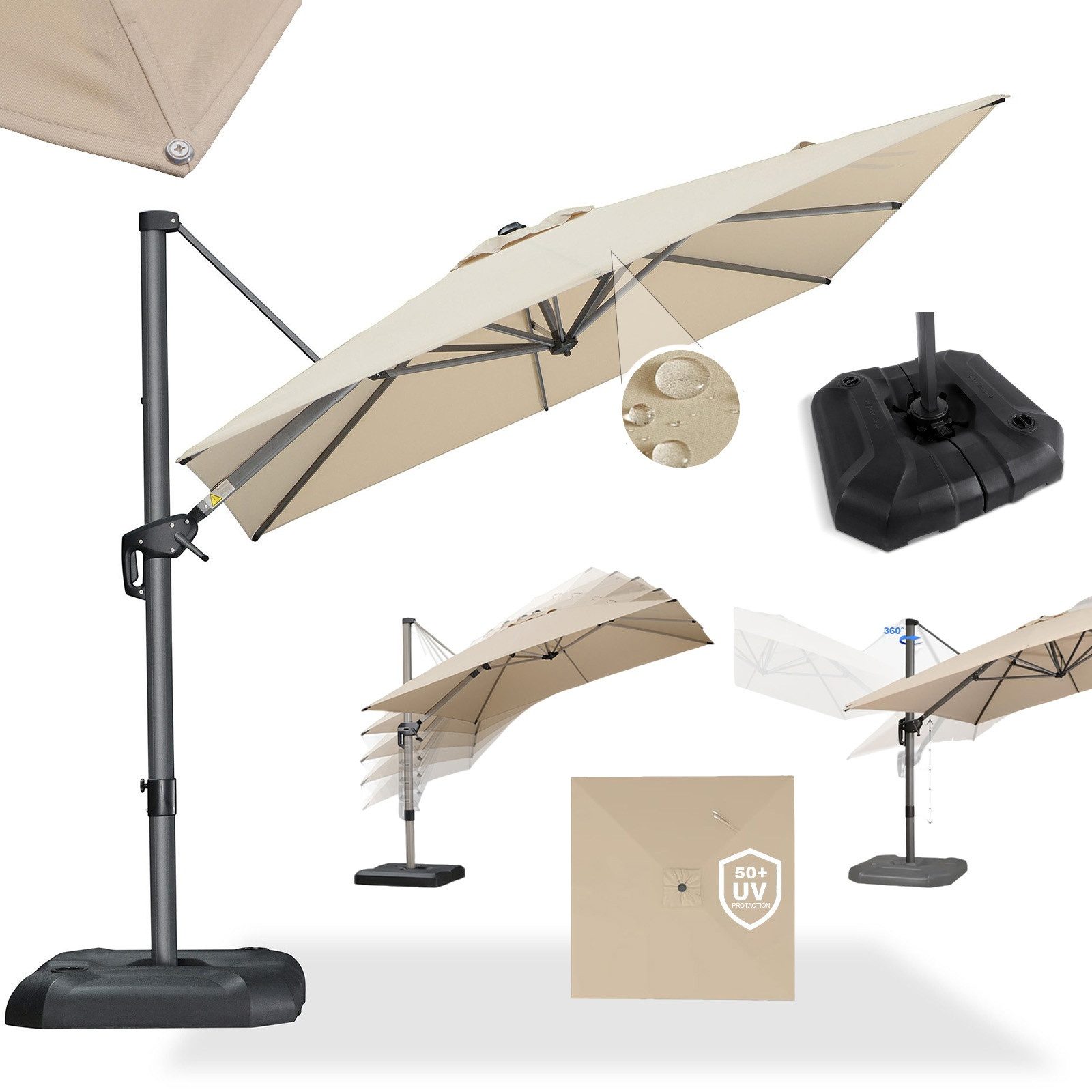 Pflegehinweis | Wir empfehlen Ihnen, die Sonnenschirm nachts oder bei extremen Wetterbedingungen zu lagern, um die Lebensdauer zu verlängern. |