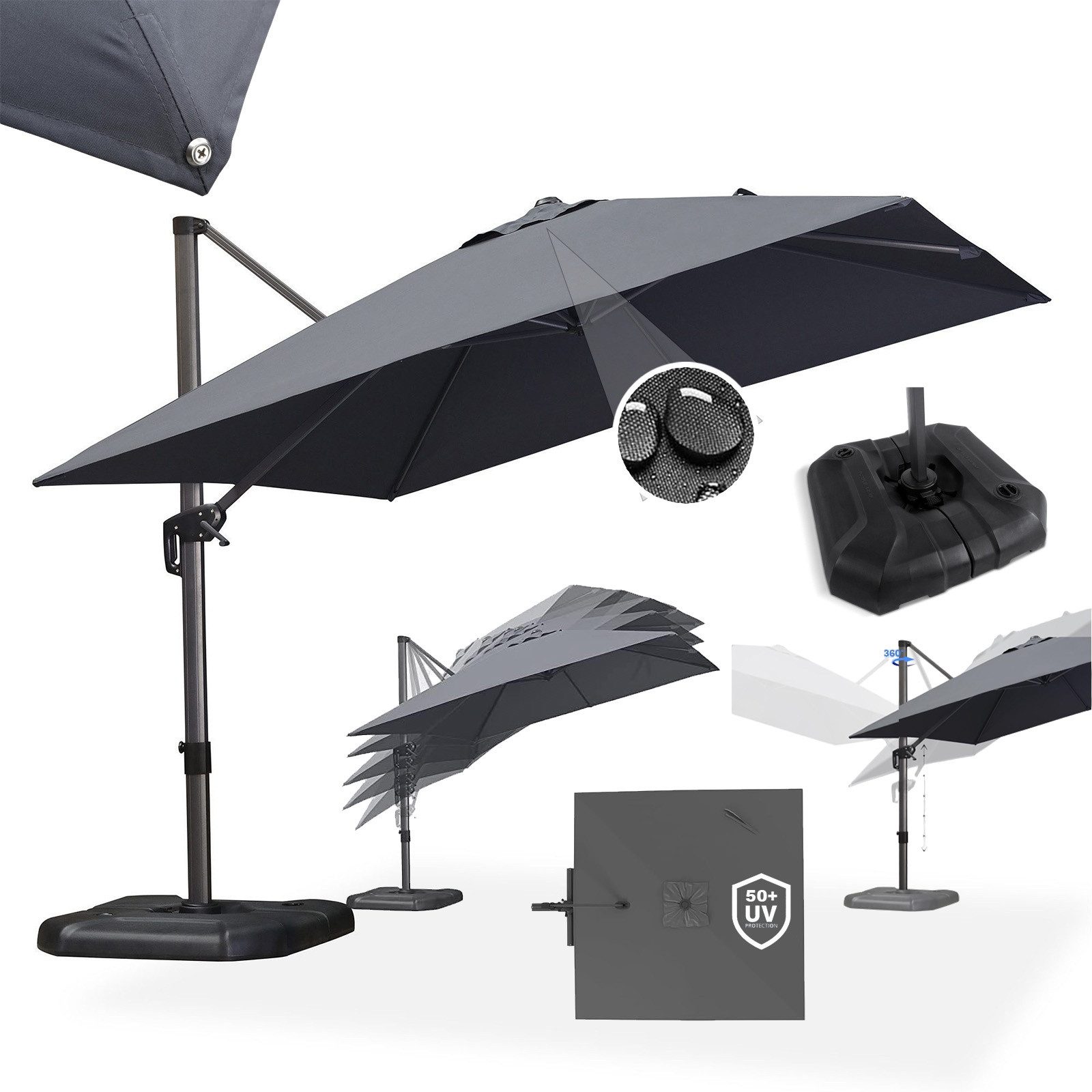 Eigenschaften | wasserabweisend verrottungsfest UV-beständig 360° drehbar |