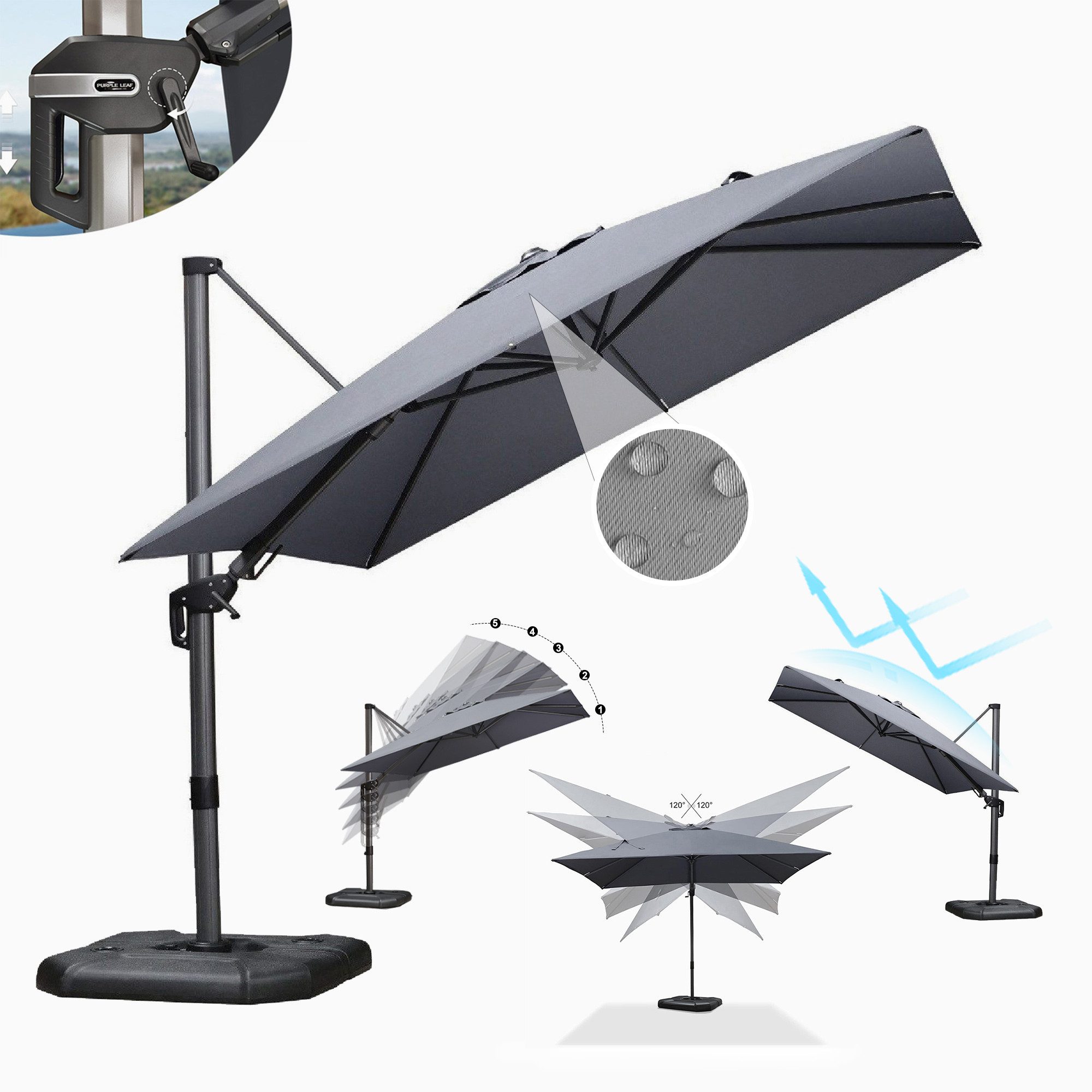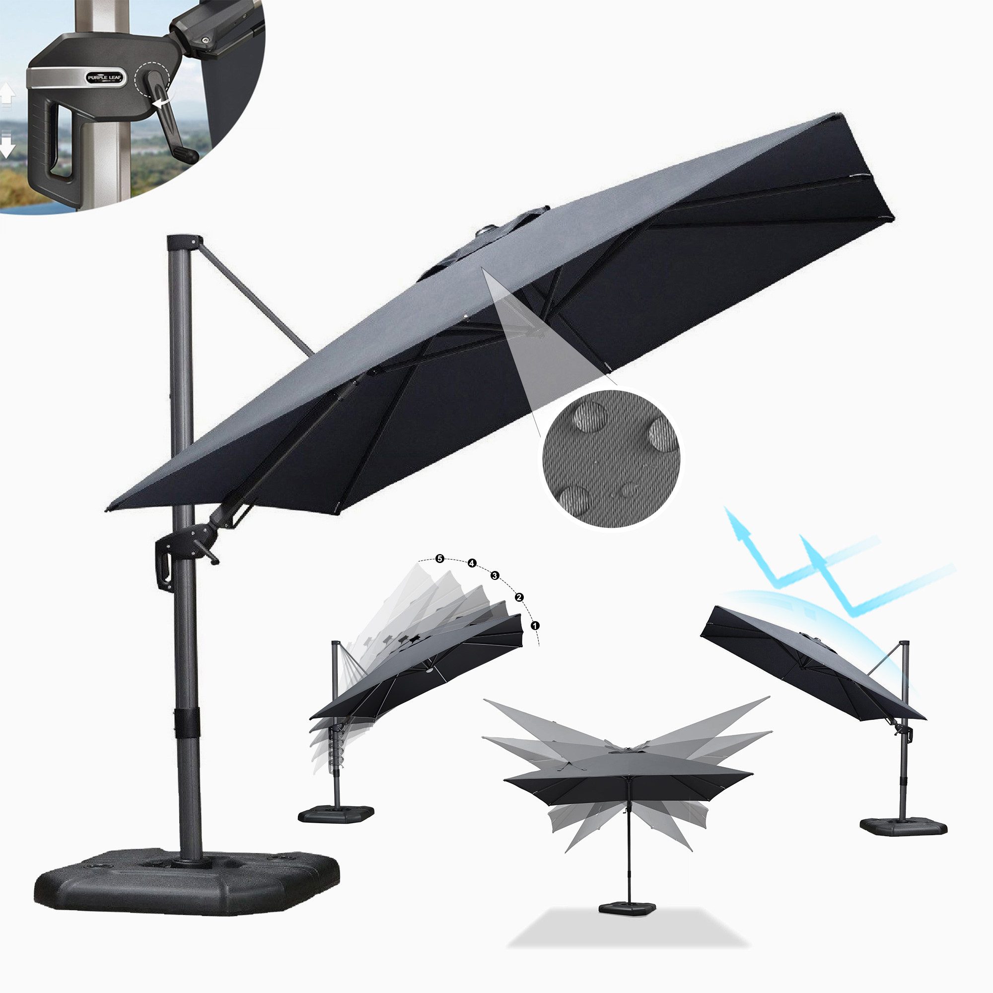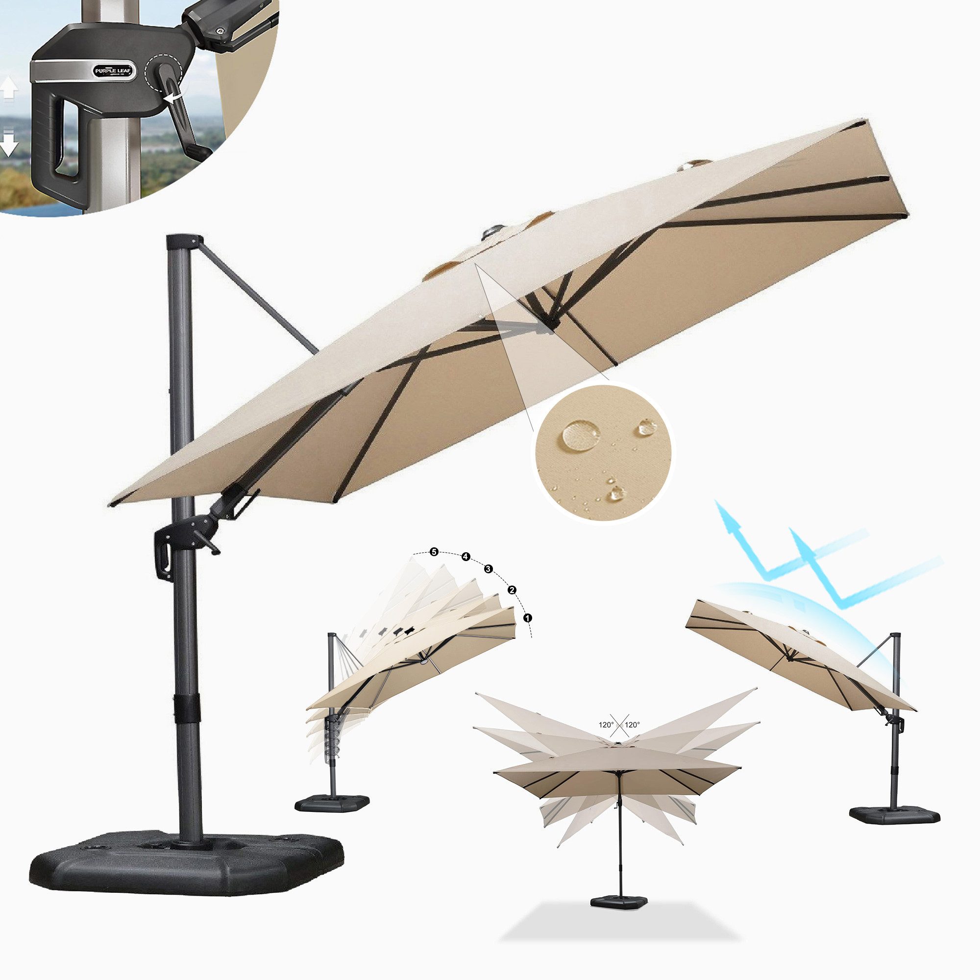 Verstellbarer windfester großer Terrassenschirm, in 5 Stufen neigbar, 360° drehbar für flexible Schattenspender-Ausrichtung