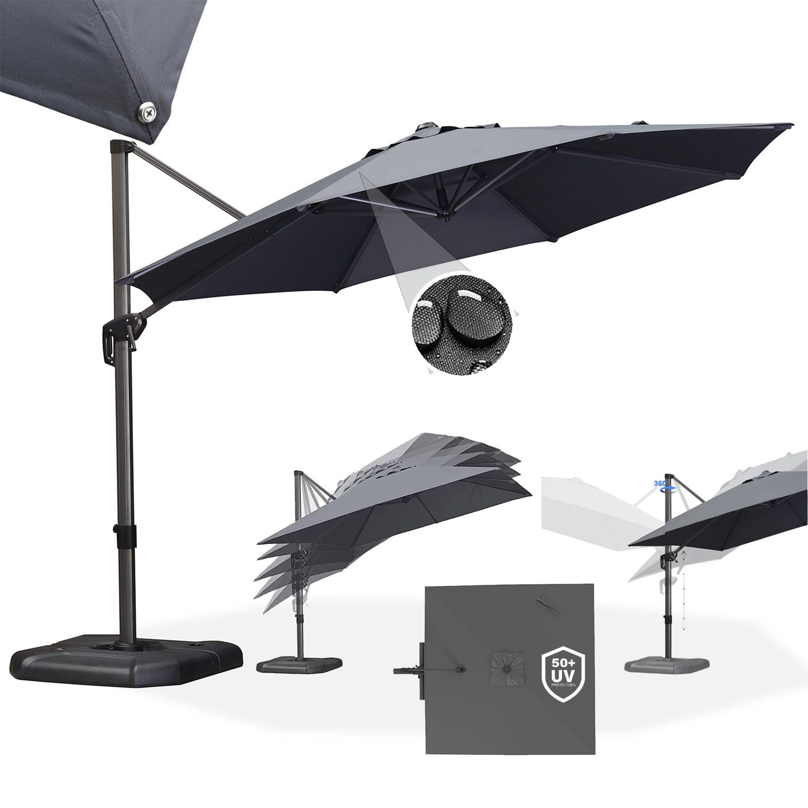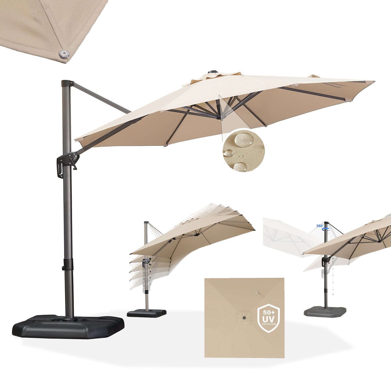 Verstellbarer großer Terrassenschirm, in 5 Stufen neigbar, 360° drehbar für flexible Schattenspender-Ausrichtung