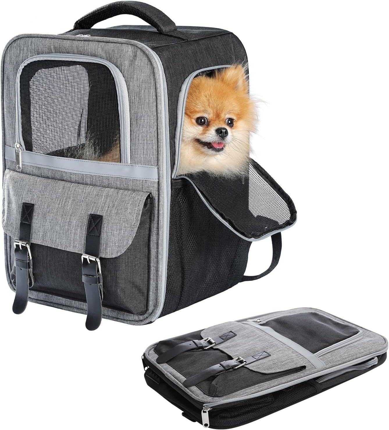 Mit einer Höhe von 40 cm und einer Bodenfläche von 30 x 24 cm eignet sich der Rucksack für kleine Hunde, Katzen bis 7kg.