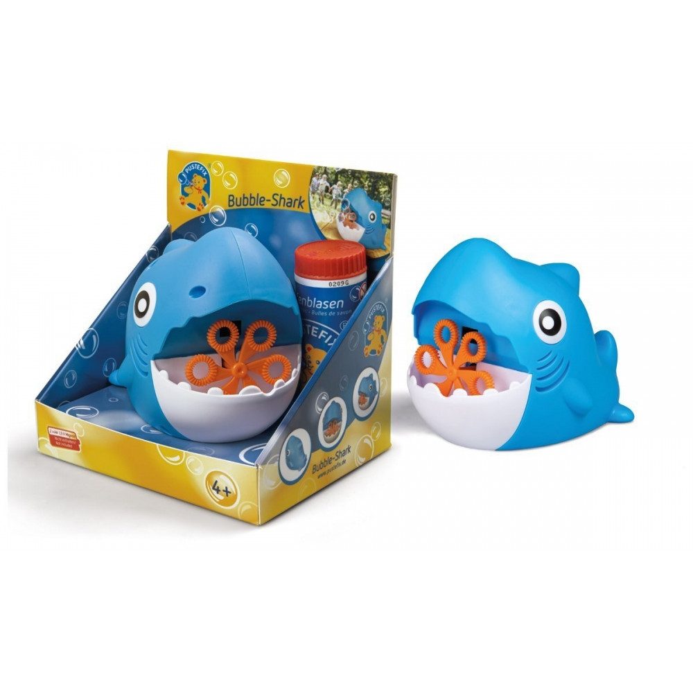 Lieferumfang | Mini-Seifenblasenmaschine im Hai-Design, Inklusive 70ml Pustefix-Seifenblasenlösung |
