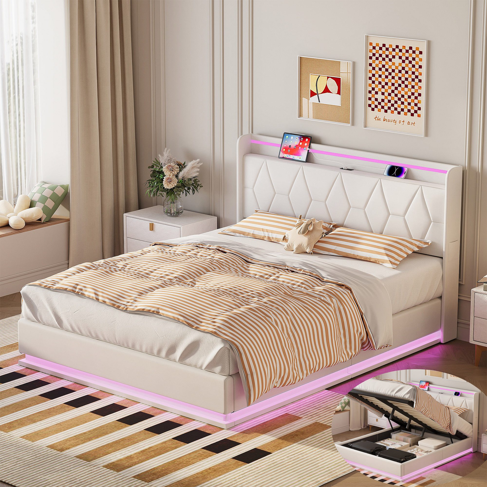 PXloue Polsterbett LED hydraulisches Doppelbett, Stauraumbett,mit Lattenrost und bettkasten,140x200 cm