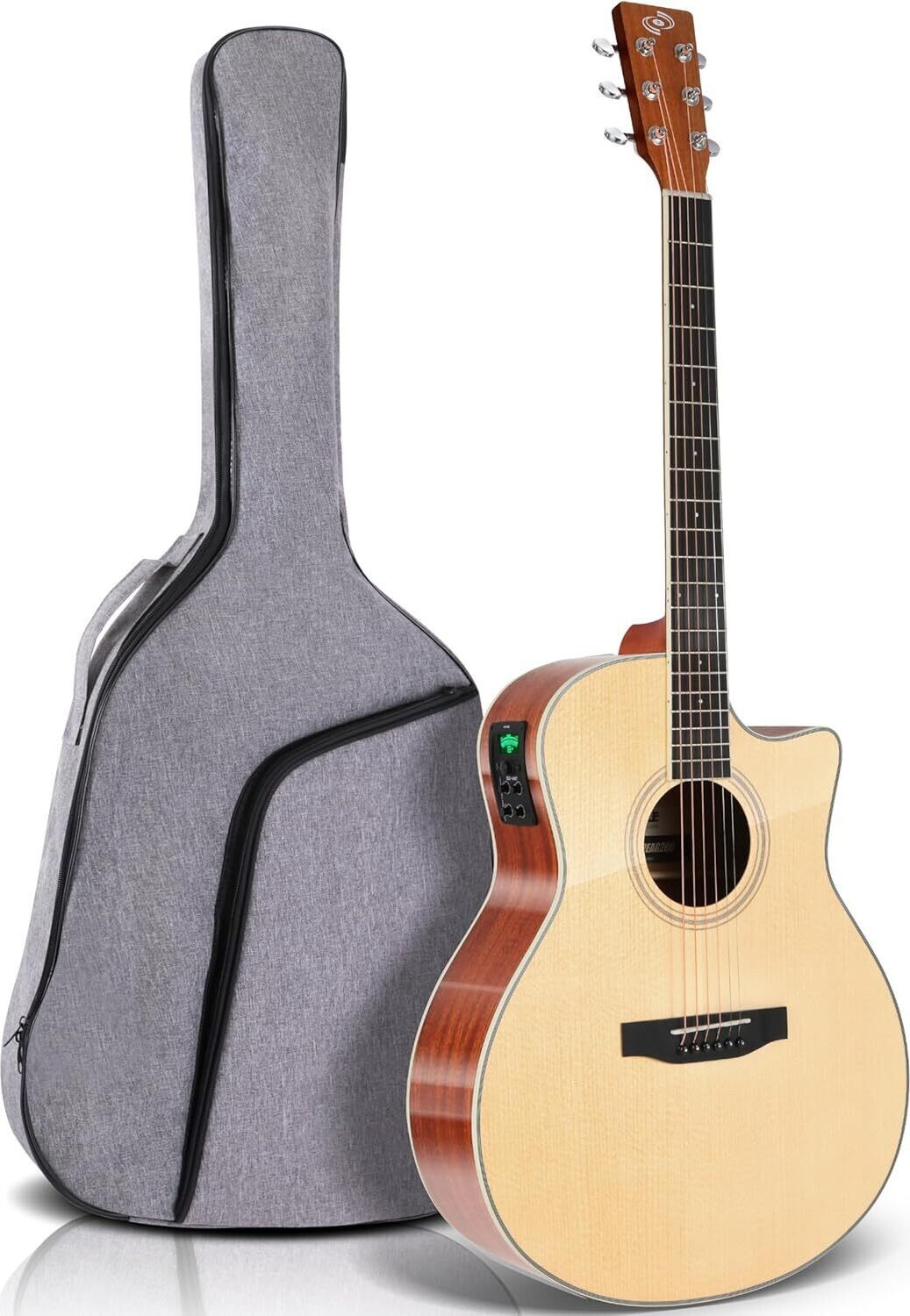 VIELSEITIGE E-AKUSTIKGITARRE – Dank des eingebauten EQ-400T Vorverstärkers kannst du die Gitarre sowohl als Akustikgitarre als auch als E-Gitarre verwenden, um deinen Sound nach Belieben zu verstärken. Ideal für E-Gitarren-Einsteiger und als E-Gitarren Set für eine breite musikalische Ausdruckskraft.