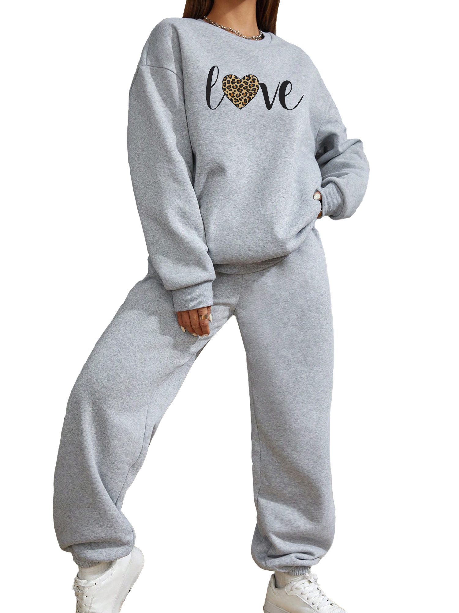 Dieses Damen-Winteroutfit aus dickem, bequemem Stoff besteht aus einem Fleecepullover mit Rundhalsausschnitt und einer hoch taillierten Jogginghose.