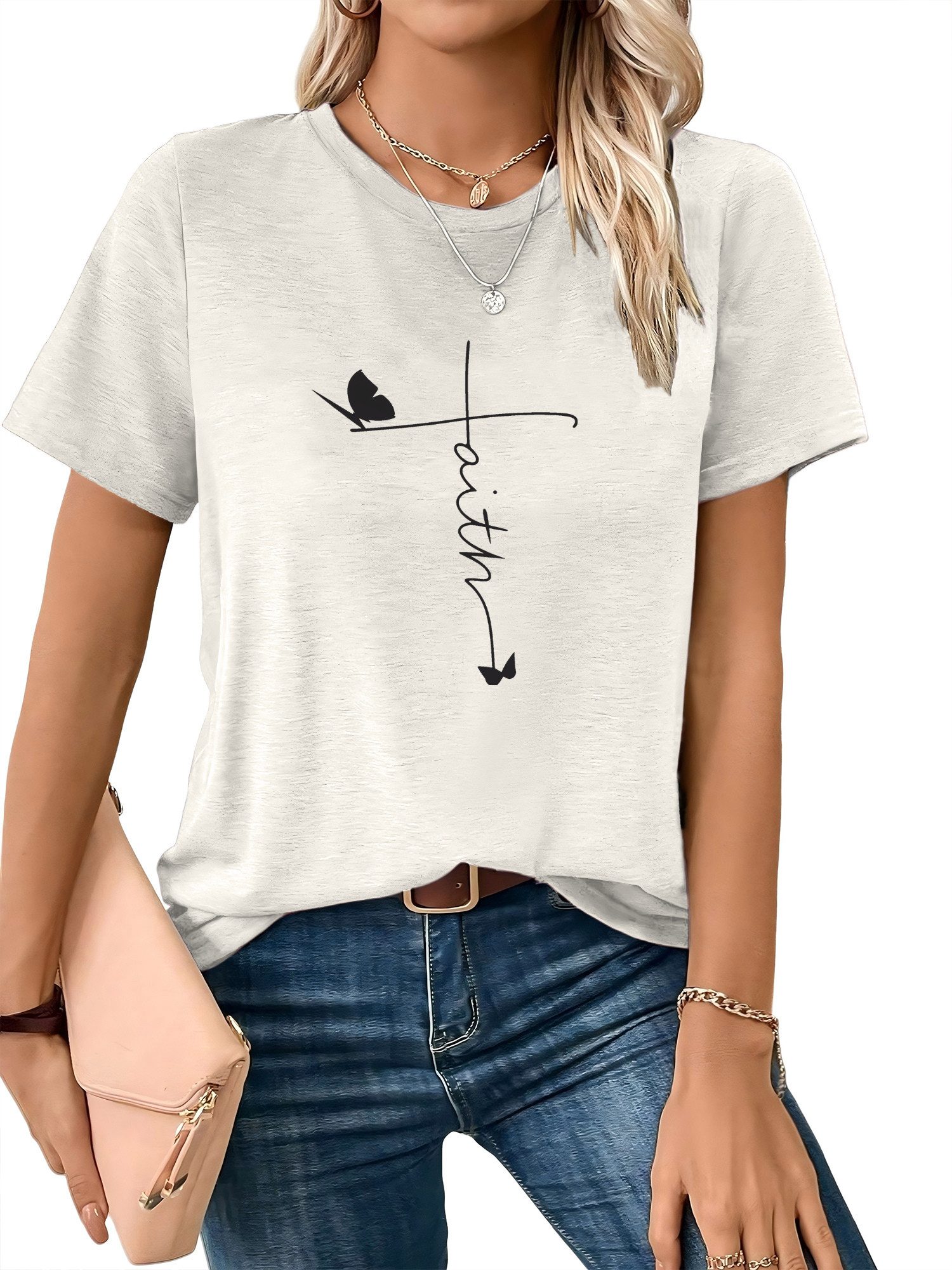 Vintage-inspiriertes und lustiges T-Shirt mit lockerer Passform und lustiger Kreuz Schmetterling Ausgefallene auf der Brust in lässiger Silhouette, überschnittenen Schultern, kurzen Ärmeln und Rundhalsausschnitt. Der Personalisiertes Grafik druck macht dieses T-Shirt stilvoll und schmeichelhaft.